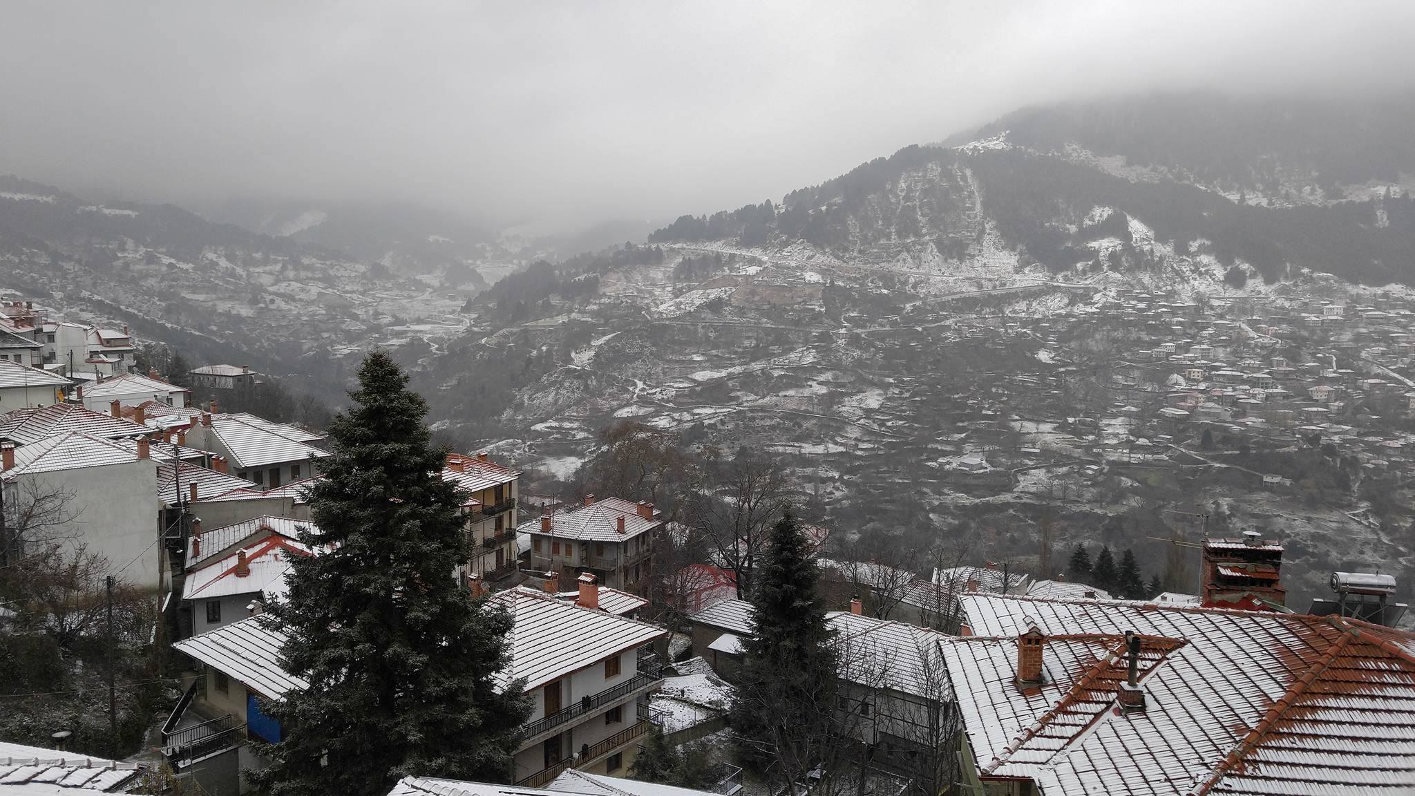 Στα λευκά “ξύπνησε” σήμερα το Μέτσοβο. Στην ορεινή, κωμόπολη χιονίζει από τη νύχτα και οι εικόνες είναι πανέμορφες.