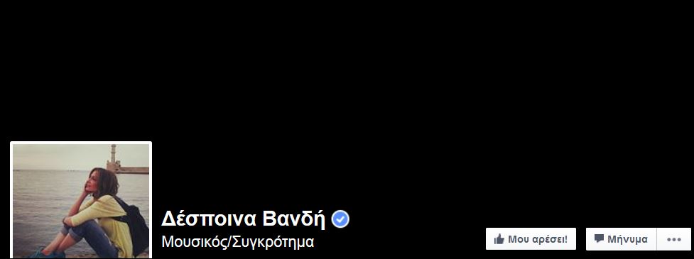 Η Δέσποινα Βανδή άλλαξε το εξώφυλλο της σελίδας της στο Facebook και έβαλε ένα μαύρο φόντο σε ένδειξη πένθους για τον πρόωρο χαμό του Παντελή Παντελίδη. Όπως είναι γνωστό αύριο ήταν προγραμματισμένη η πρεμιέρα του Παντελή Παντελίδη με τη Δέσποινα Βανδή και τον Κώστα Μαρτάκη στο νυχτερινό κέντρο Teatro Music Hall.