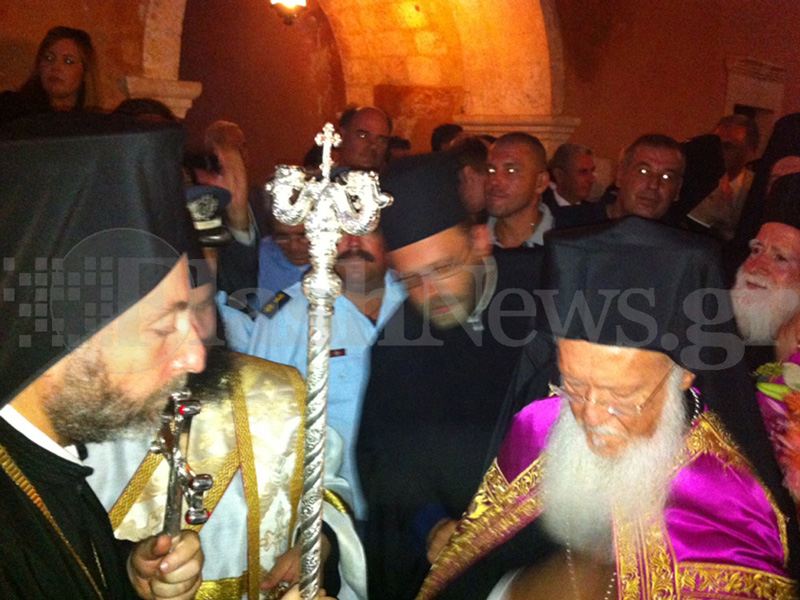 Τον κ.κ Βαρθολομαίο υποδέχθηκαν ο Υφυπουργός Διοικητικής Μεταρρύθμισης και Ηλεκτρονικής Διακυβέρνησης οι βουλευτές του νομού, ο Περιφερειάρχης Κρήτης ο Αντιπεριφερειάρχης Χανίων, ο Δήμαρχος Χανίων ο αρχιεπίσκοπος Κρήτης Ειρηναίος και φυσικά πλήθος πιστών.