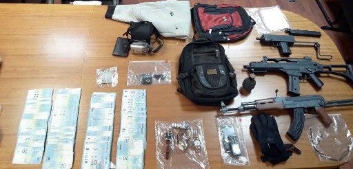 Στην κατοχή τους, καθώς και από τις έρευνες σε οικίες και άλλους χώρους, βρέθηκαν και κατασχέθηκαν τρία πιστόλια και περίστροφο κρότου, τρία όπλα απομιμήσεις, απομίμηση χειροβομβίδας, το χρηματικό ποσό των 16.060 ευρώ, αυτοσχέδιο εργαλείο διοχέτευσης αερίου στα ΑΤΜ, διαρρηκτικά εργαλεία, κοσμήματα και τέσσερα αυτοκίνητα.