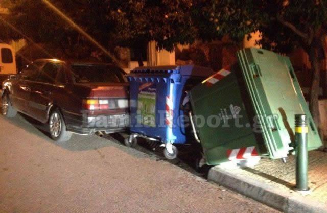 Πρόβλημα στο παρκάρισμα φαίνεται να είχε ένας οδηγός στη Λαμία που δεν δίστασε να παραμερίσει τους κάδους απορριμμάτων για να σταθμέυσει το όχημα του.