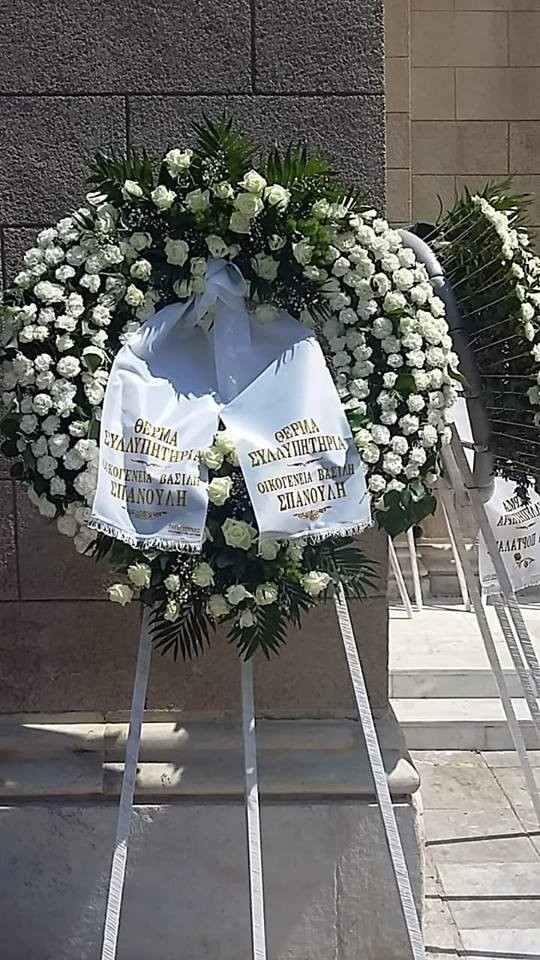 Παράλληλα, εκατοντάδες είναι και τα στεφάνια που φτάνουν στην εκκλησία. Ανάμεσά τους βρίσκονται και αυτά από τις οικογένειες των Βασίλη Σπανούλη και Παναγιώτη Αγγελόπουλου, όπως μπορείτε να δείτε και στις παρακάτω φωτογραφίες: