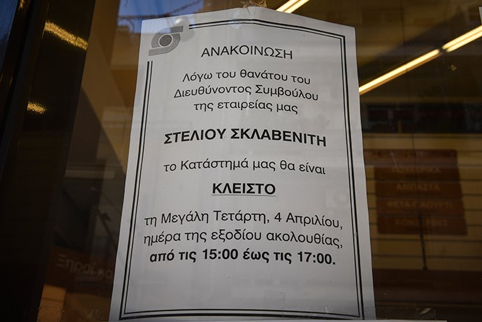 Όπως είχε ανακοινωθεί κατά τη διάρκεια της τελετής και συγκεκριμένα από τις 15:00 έως τις 17:00 παρέμειναν κλειστά όλα τα καταστήματα, οι μονάδες και τα κεντρικά γραφεία της Σκλαβενίτης και της αλυσίδας Cash and Carry The Mart. Παράλληλα σε ψήφίσμα του τα Δ.Σ. των δύο εταιρειών μεταξύ των άλλων αποφάσισαν «ότι κατά την διάρκεια της Μεγάλης Εβδομάδας σε όλα τα καταστήματα να αναρτηθεί μεσίστια η σημαία της εταιρείας και να μην αναπαράγεται μουσική ή να πραγματοποιούνται ανακοινώσεις για προσφορές και τυχόν εκδηλώσεις».