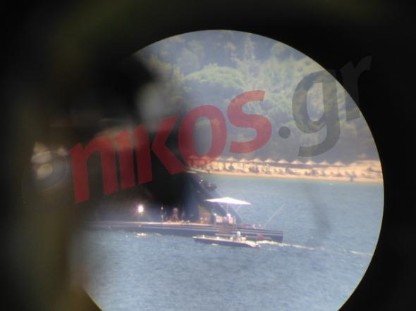 Το υπερπολυτελές κότερο (με το χαρακτηριστικό σκούρο μπλε χρώμα) έχει προσορμήσει στα ανοιχτά της παραλίας “Μάραθα”, κάτω από το ξενοδοχείο “Σκιάθος Παλλάς”, ενώ μέλη της βασιλικής οικογένειας βγαίνουν στη στεριά με ταχύπλοα και απολαμβάνουν τις διακοπές τους.