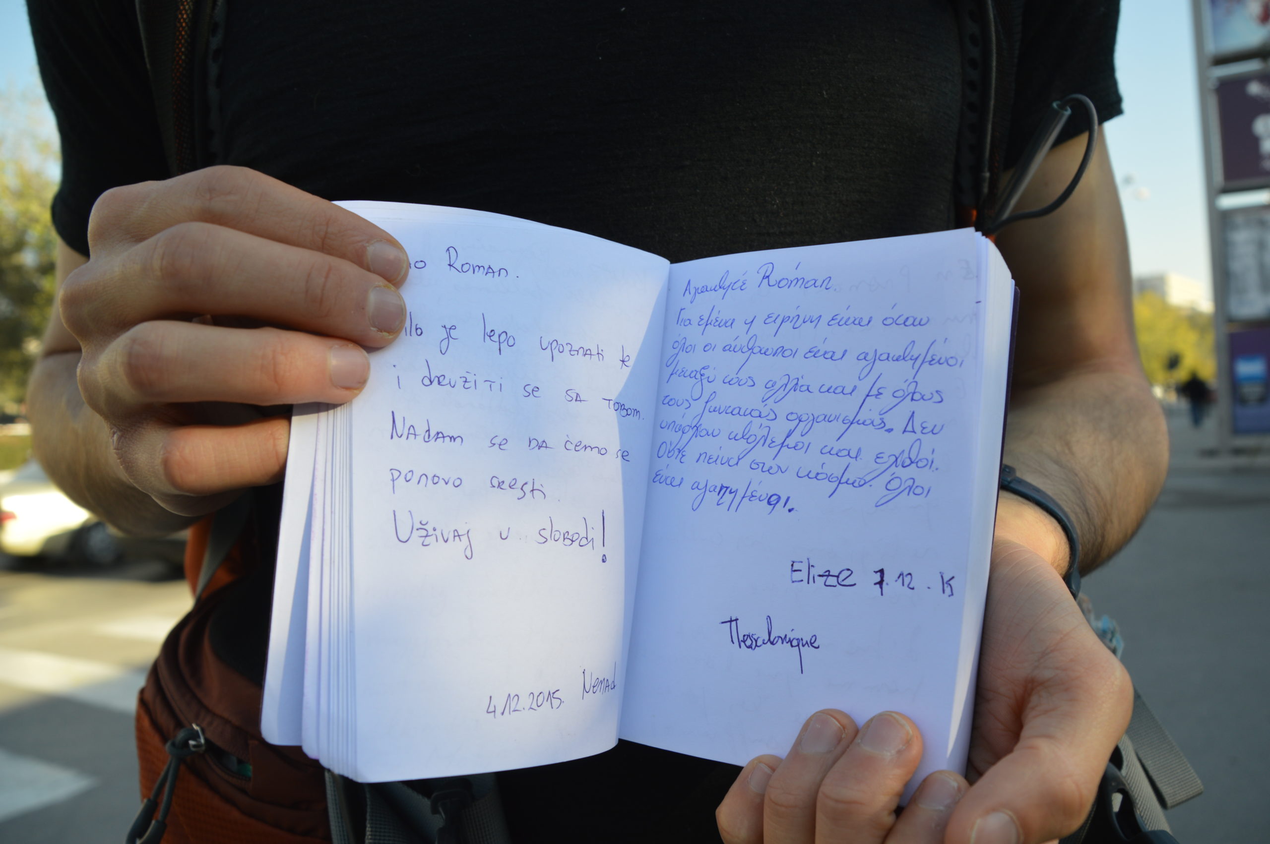 “Θα είναι ένα συλλεκτικό βιβλίο. Ζητώ από όσους συναντώ στον δρόμο μου να απαντήσουν στην ερώτηση ‘πώς μπορεί να επιτευχθεί η ειρήνη μεταξύ των ανθρώπων. Στόχος μου είναι να συναντήσω όσο το δυνατόν περισσότερους ανθρώπους από όλες τις εθνικότητες και όλες τις κοινωνικές τάξεις για να δημιουργήσουμε όλοι μαζί ένα σύμβολο για την ειρήνη. Αυτό σημαίνει πως από τις απαντήσεις που θα δώσουν όλοι αυτοί οι άνθρωποι θα μπορούσε να δημιουργηθεί η αφετηρία για έναν διαπολιτισμικό διάλογο· όλο αυτό θα μπορούσε να αποτελέσει μια ωραία εικόνα συνεύρεσης ανθρώπων και πολιτισμών” λέει στο ΑΜΠΕ ο νεαρός Γάλλος.