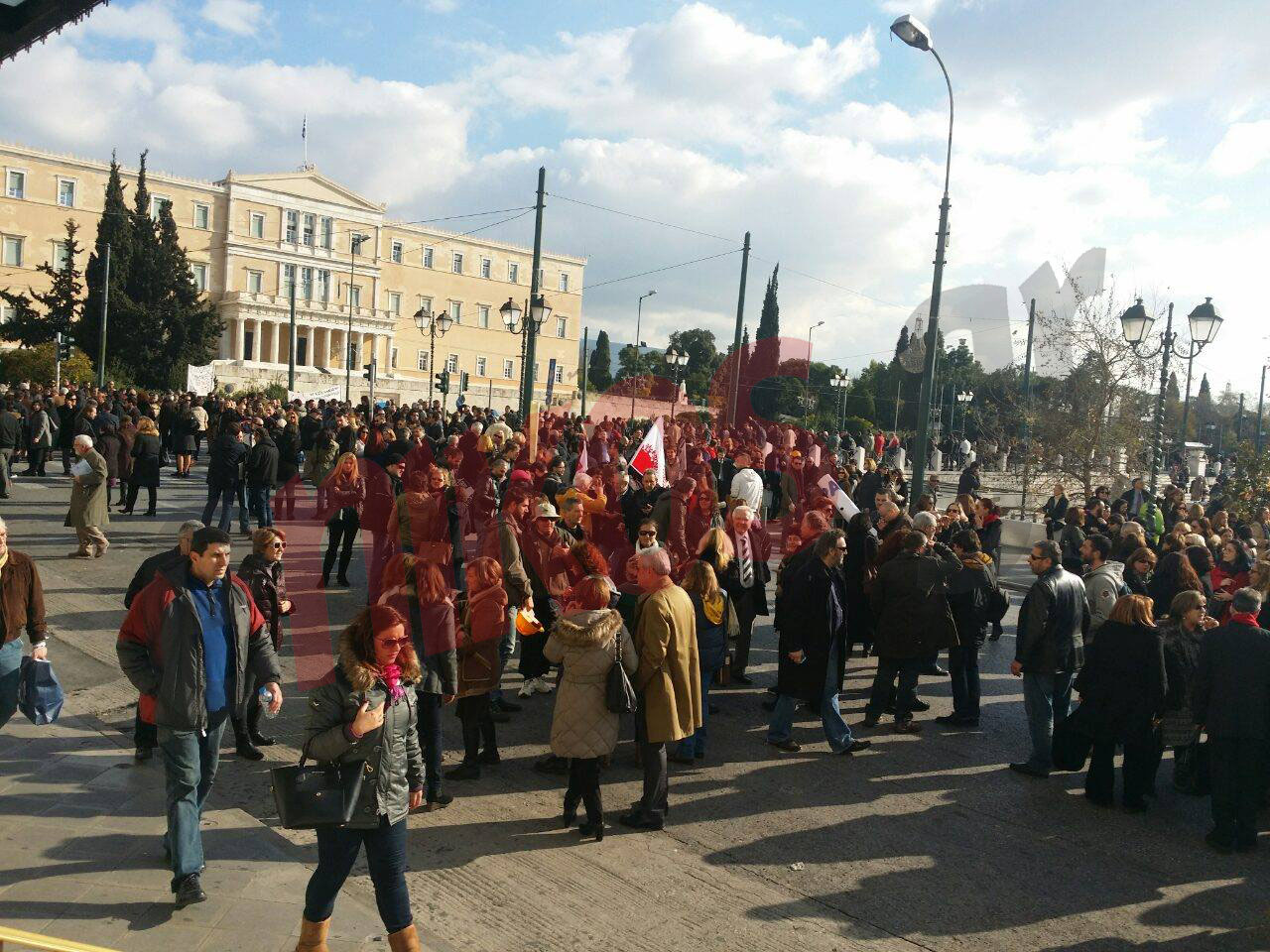 Έξω από τη Βουλή έφτασε η πορεία διαμαρτυρίας των επιστημόνων κατά του νομοσχεδίου που προωθεί η κυβέρνηση για το Ασφαλιστικό.