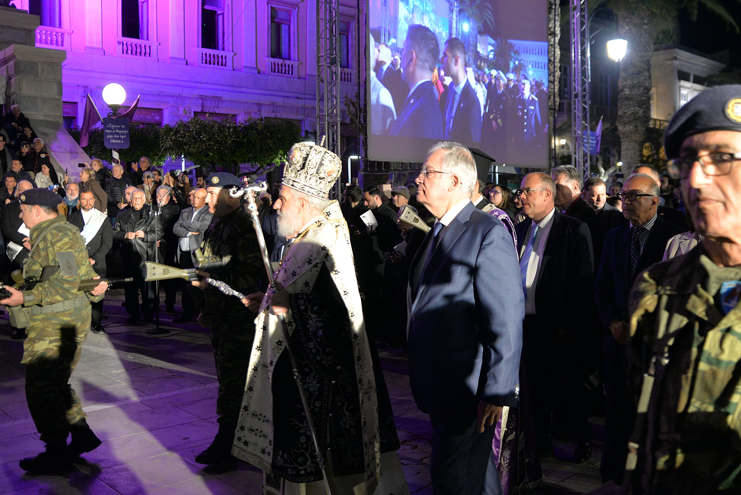Ο Πρόεδρος της Δημοκρατίας Κωνσταντίνος Αν. Τασούλας παρακολούθησε την Ακολουθία του Επιταφίου στον Μητροπολιτικό Ναό Μεταμορφώσεως του Σωτήρος στην Ερμούπολη της Σύρου.
