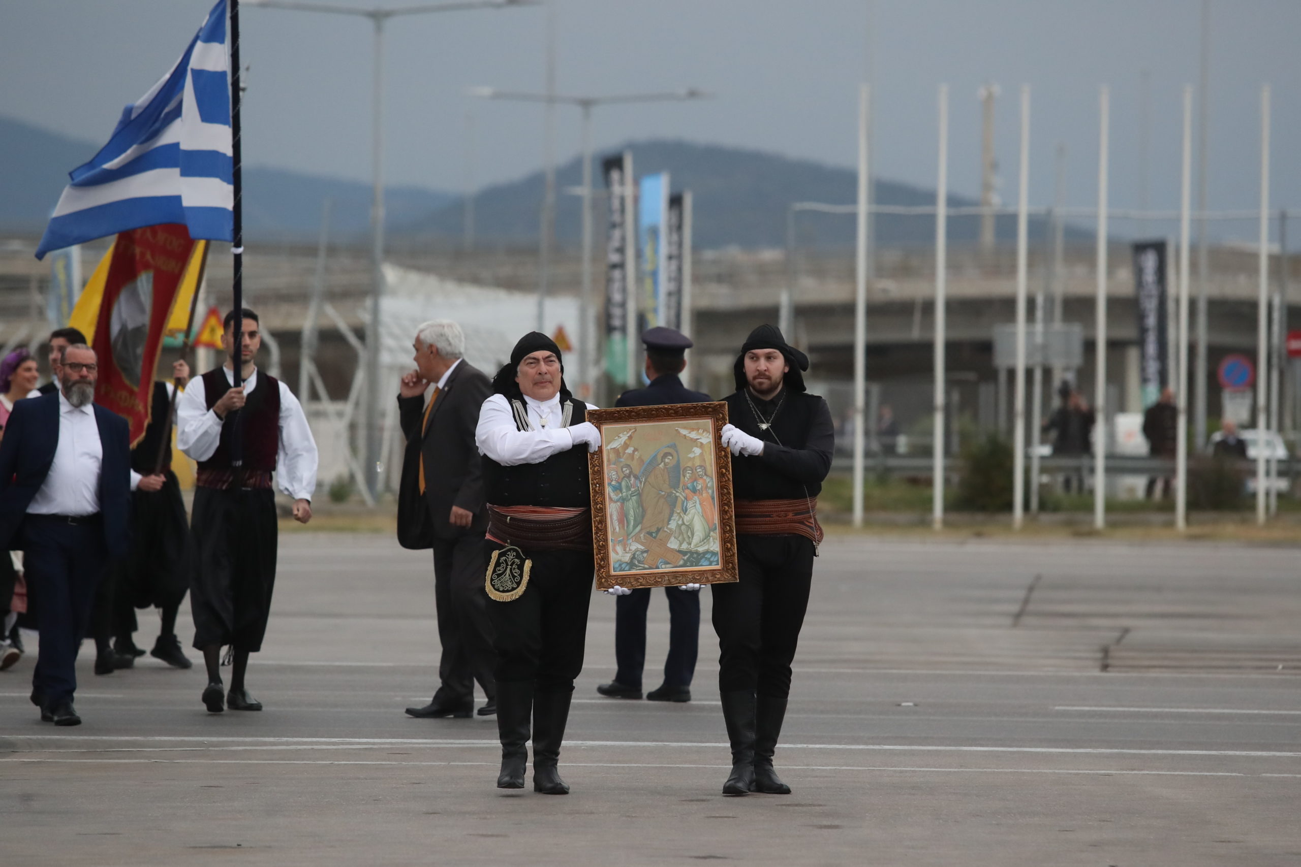 Άγημα των ενόπλων δυνάμεων απέδωσε τιμές, ενώ στην υποδοχή παραβρέθηκαν μεταξύ άλλων η φιλαρμονική μπάντα Μαρκοπούλου, η οποία παιάνισε τον εθνικό ύμνο, το Σώμα Ελλήνων Προσκόπων, ο σύλλογος Ποντίων Λαυρίου με την εικόνα της Αναστάσεως, ο σύλλογος Μικρασιατών Ραφήνας, κ.α.