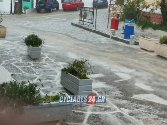 Συγκεκριμένα, όπως αναφέρει η ιστοσελίδα cyclades24.gr, οι άσχημες καιρικές συνθήκες ξεκίνησαν με έντονη νεροποντή, συνεχίστηκαν με δυνατούς κεραυνούς, ενώ αργότερα εκδηλώθηκε πολύ έντονη χαλαζόπτωση. Μάλιστα, σύμφωνα με την ίδια ιστοσελίδα, στο νησί σημειώθηκαν και διακοπές ρεύματος.