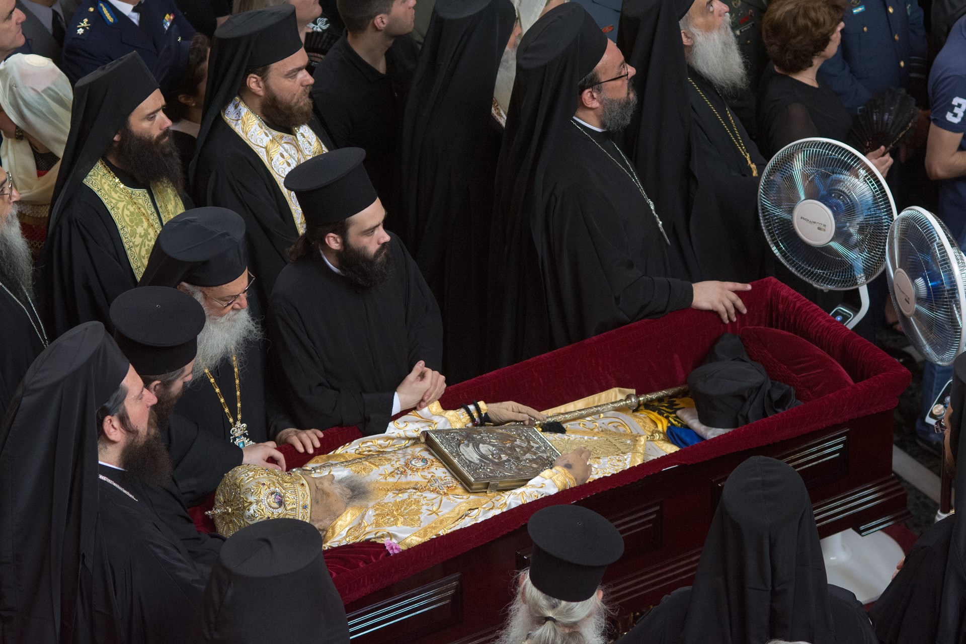 O δήμαρχος Λαρισαίων Απόστολος Καλογιάννης στον επικήδειο λόγο του είπε μεταξύ άλλων ότι η Λάρισα αποχαιρετά με συγκίνηση τον ακούραστο Ποιμενάρχη της τοπικής Εκκλησίας, τον πνευματικό της ηγέτη, τον καρτερικό και ανεξίκακο Ιερωμένο με το γνήσιο ορθόδοξο πνεύμα».