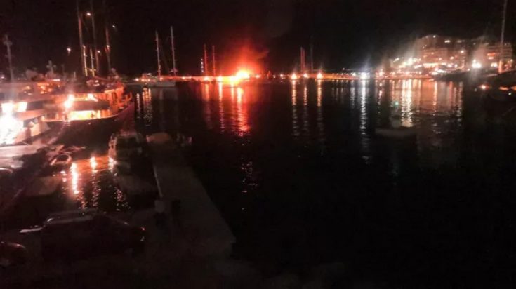 H πυρκαγιά ξέσπασε αρχικά σε ένα από τα γιοτ και σύντομα επεκτάθηκε στο διπλανό σκάφος.