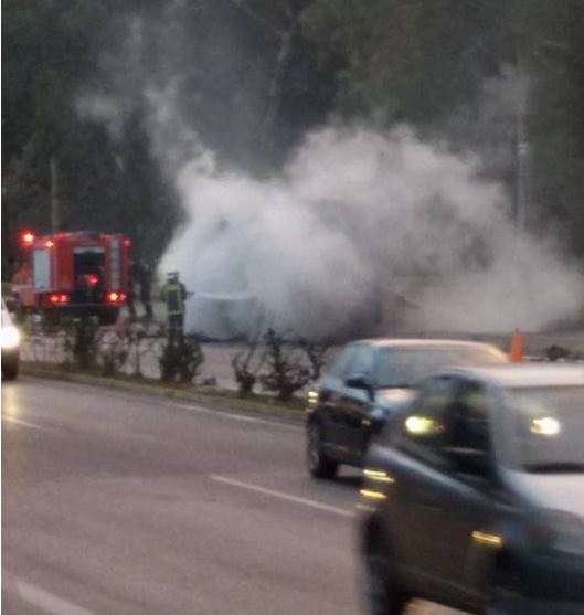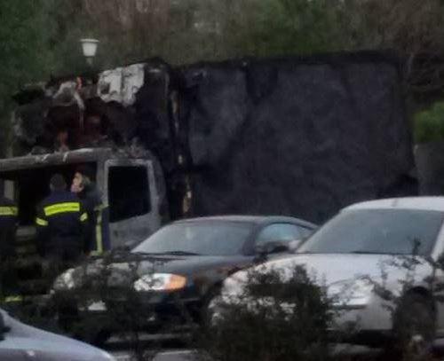 Το βαρύ όχημα τυλίχτηκε στις φλόγες, αλλά ευτυχώς οι δύο επιβαίνοντες σε αυτό πρόλαβαν και βγήκαν εγκαίρως.