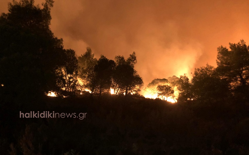 Ολονύχτια μάχη με τις φλόγες συνεχίζουν να δίνουν οι πυροσβέστες στη Σιθωνία Χαλκιδικής. Νωρίτερα η φωτιά πέρασε στο κάμπινγκ “Πλατανίτσι”. Ευτυχώς στο κάμπινγκ δεν βρισκόταν κανείς. Η κυκλοφορία στον επαρχιακό δρόμο έχει απαγορευθεί και η περιοχή έχει εκκενωθεί.