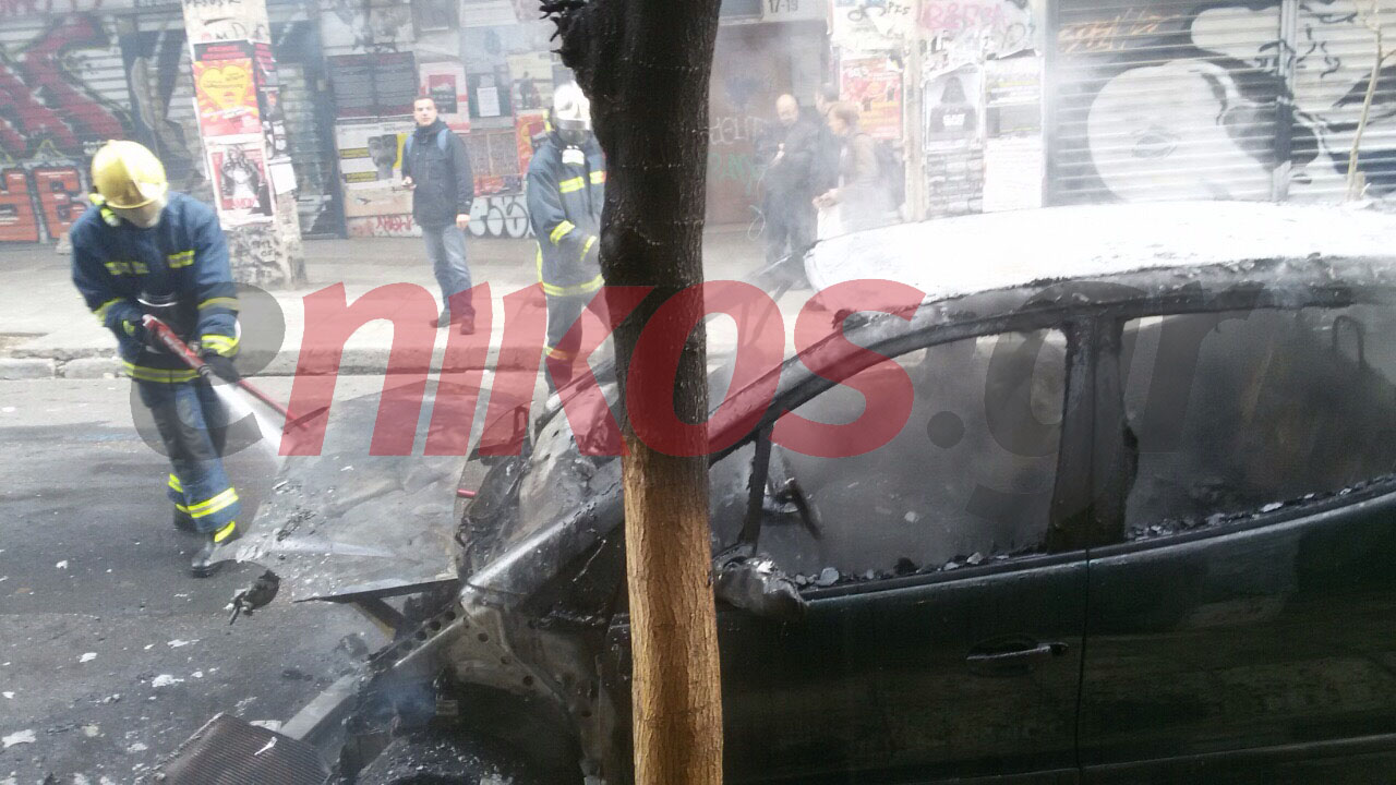 Άγνωστοι έβαλαν φωτιά για δεύτερη φορά στο ίδιο αυτοκίνητο στην οδό Σολωμού στα Εξάρχεια με προφανή σκοπό να το καταστρέψουν ολοσχερώς. Η πυροσβεστική έσπευσε πάλι στο σημείο για να σβήσει τη φωτιά.