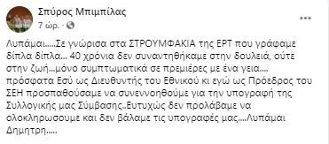 Σπύρος Μπιμπίλας: Λυπάμαι Δημήτρη
