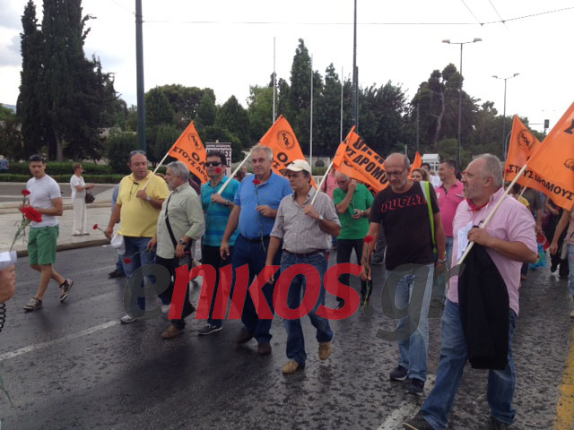 Με γαρίφαλα στο χέρι, εκπαιδευτικοί της ΟΛΜΕ διαμαρτύρονται με τη σειρά τους για τα δυσβάσταχτα κυβερνητικά μέτρα που φέρνει νέο «ψαλίδι» στους μισθούς τους.Η πορεία των εκπαιδευτικών βρίσκεται στο Σύνταγμα και αναμένεται να ενωθεί με τους άλλους εργαζόμενους.