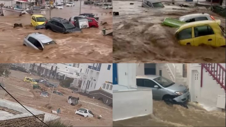 To απόγευμα της Δευτέρας, ήχησε το 112 και για τη Μύκονο, όπου δρόμοι μετατράπηκαν σε «ποτάμια».