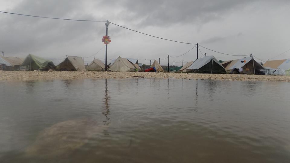 Δεκάδες πρόσφυγες και εθελοντές προσπαθούσαν μέσα στην βροχή να δημιουργήσουν πρόχειρα αυλάκια για να φεύγουν τα νερά, συμφώνα με την ιστοσελίδα epiruspost.gr.