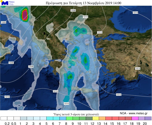 Από τις μεσημεριανές ώρες όλα τα στοιχεία συνηγορούν στο σχηματισμό μίας σημαντικής σε έκταση ζώνης σύγκλισης από το Κεντρικό έως το Νοτιοδυτικό Αιγαίο, όπου θα εκδηλωθούν βροχές και καταιγίδες ιδιαίτερα μεγάλης κατά τόπους έντασης. Η ζώνη αυτή σταδιακά θα κινηθεί προς τα ανατολικά, επηρεάζοντας την Εύβοια, τις Κυκλάδες, την Κρήτη και το βράδυ τα Δωδεκάνησα.