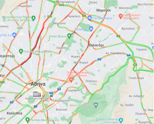 Χαμηλές ταχύτητες στην Ποσειδώνος, στη Μεσογείων και στην Κατεχάκη.