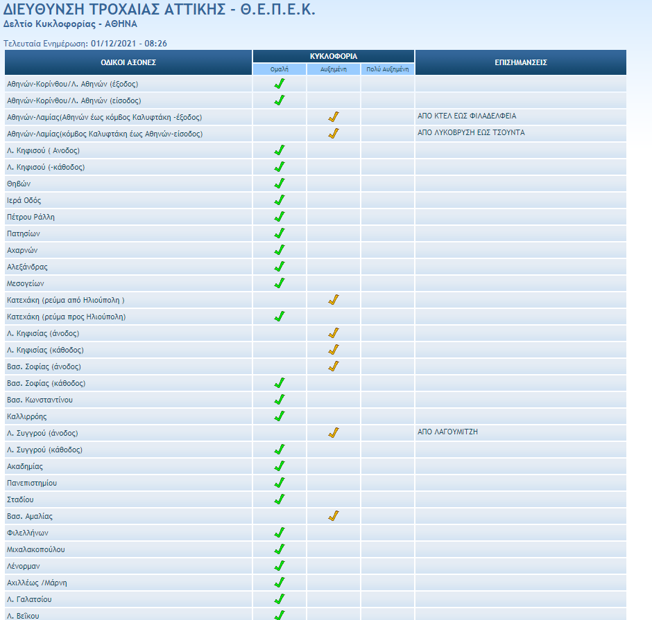 Χαμηλές ταχύτητες στην Ποσειδώνος, στη Μεσογείων, στην Βασ. Σοφίας και στην Κατεχάκη.