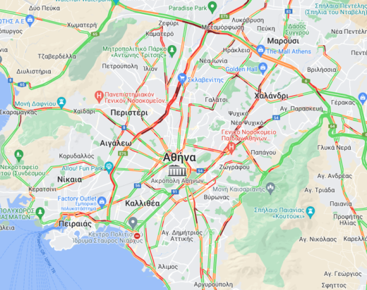 Χαμηλές ταχύτητες στην Ποσειδώνος, στη Μεσογείων, στην Βασ. Σοφίας και στην Κατεχάκη.