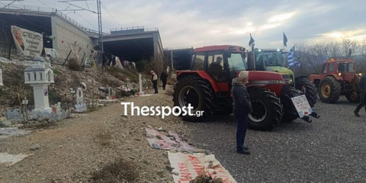 Σε μία κίνηση υψηλού συμβολισμού, οι αγρότες από το μπλόκο της Νίκαιας παρέταξαν τα τρακτέρ τους μπροστά από το μνημείο, τιμώντας με αυτόν τον τρόπο τα 57 θύματα.