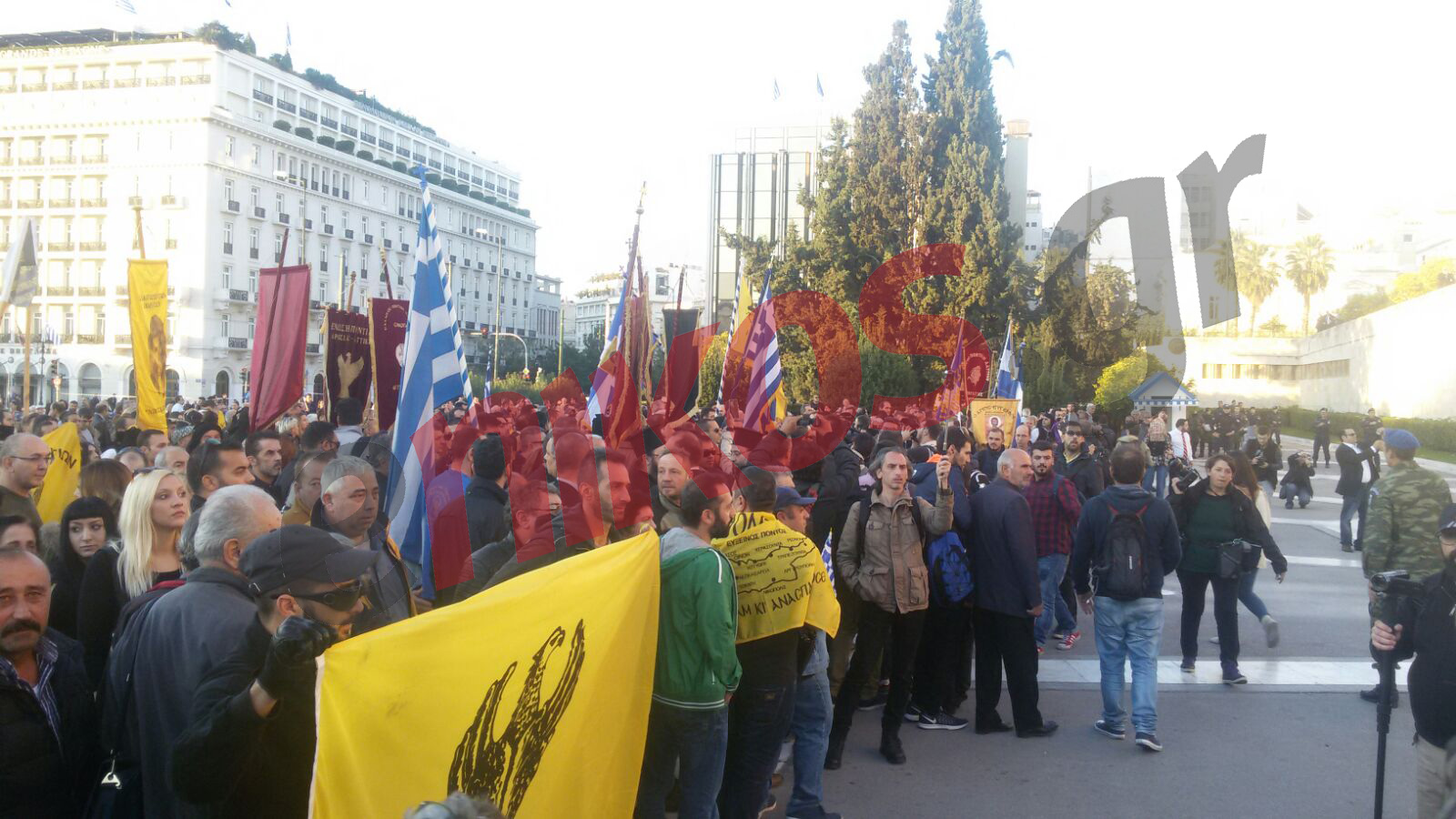 Μπροστά από το μνημείο του Αγνώστου Στρατιώτη βρίσκονται οι Πόντιοι οι οποίοι πραγματοποιούν συγκέντρωση διαμαρτυρίας στο Σύνταγμα με αφορμή τις δηλώσεις του υπουργού Παιδείας, Νίκου Φίλη στην εκπομπή του Νίκου Χατζηνικολάου «στον ενικό».