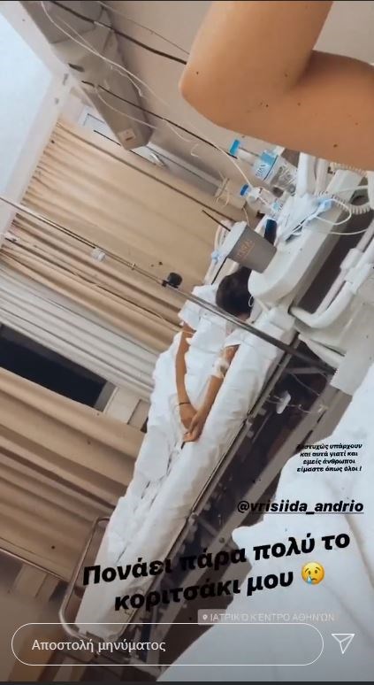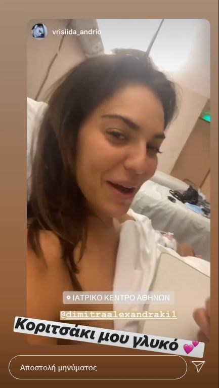 Η πρώην παίκτρια του My Style Rocks επέστρεψε από την Μύκονο που έκανε διακοπές με την Ιωάννα Τούνη και πήγε στο σπίτι της Δήμητρας Αλεξανδράκη όπου αισθάνθηκε αδιαθεσία. Διαπιστώθηκε ότι είχε πυρετό κι έτσι οι δυο φίλες πήγαν στο νοσοκομείο όπου η Βρισηίδα υπεβλήθη σε τεστ για κορονοϊό το οποίο βγήκε αρνητικό. Χρειάστηκε ωστόσο να νοσηλευτεί κι έτσι οι δυο κοπέλες πέρασαν τη νύστα στο νοσοκομείο. Όπως ενημέρωσε η Δήμητρα Αλεξανδράκη μέσα από τον λογαριασμό της στο Instagram, η Βρισηίδα διαγνώστηκε με λοίμωξη στο στομάχι.