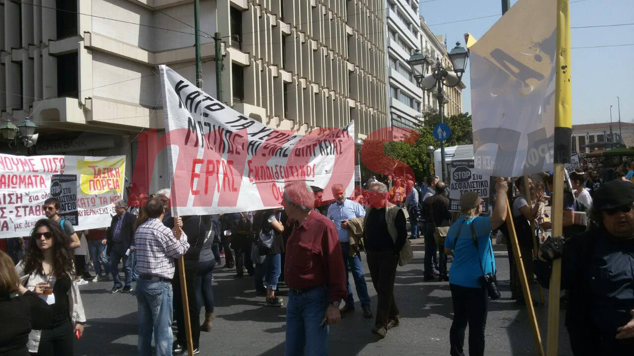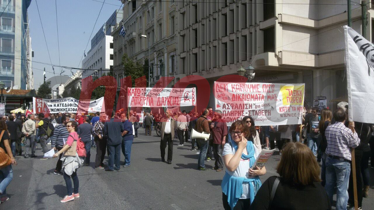 Στο Σύνταγμα βρίσκεται η πορεία της ΑΔΕΔΥ, η οποία ξεκίνησε νωρίτερα από την πλατεία Κλαυθμώνος.