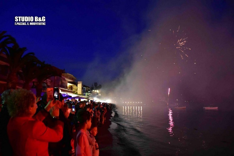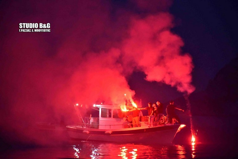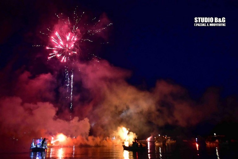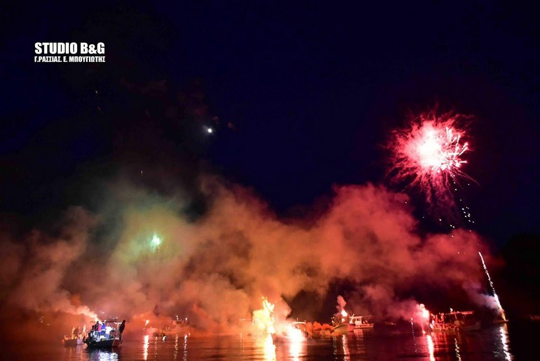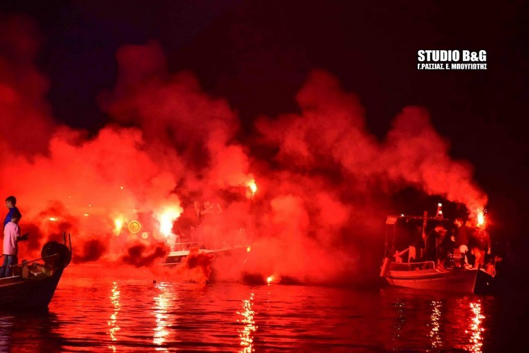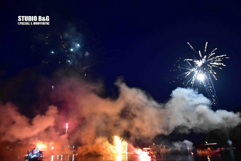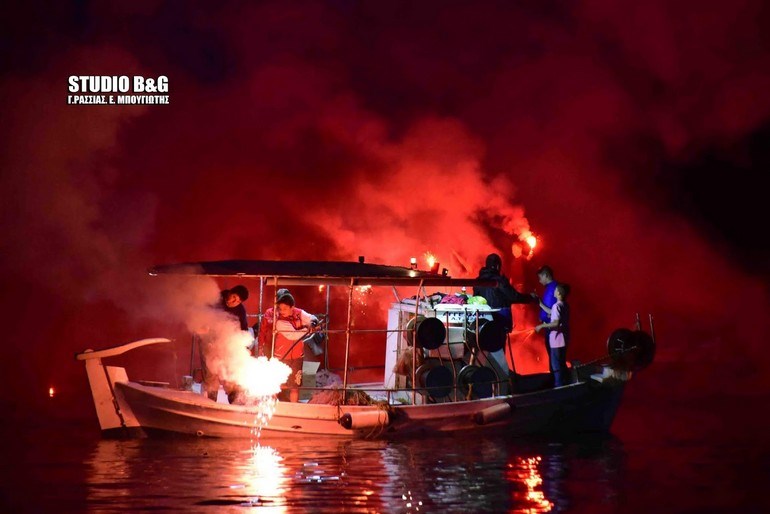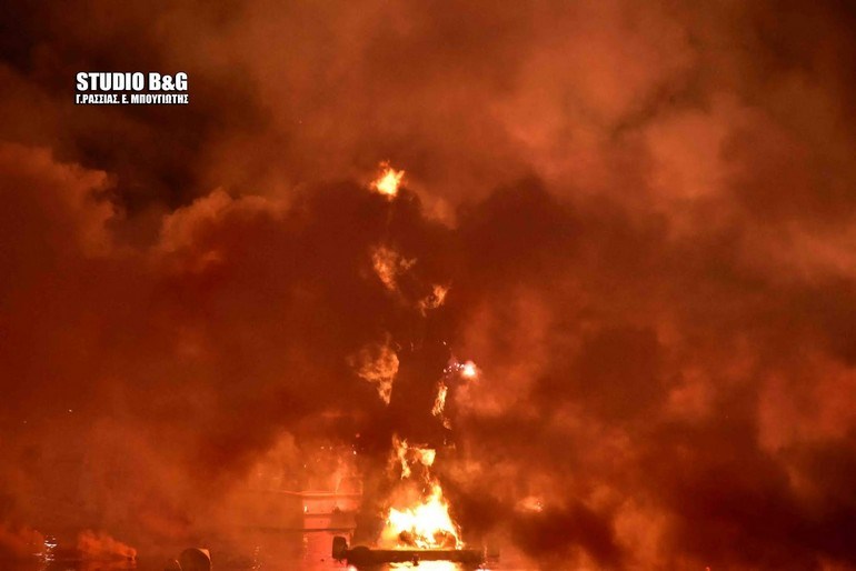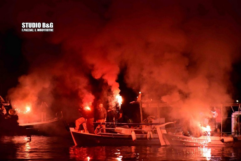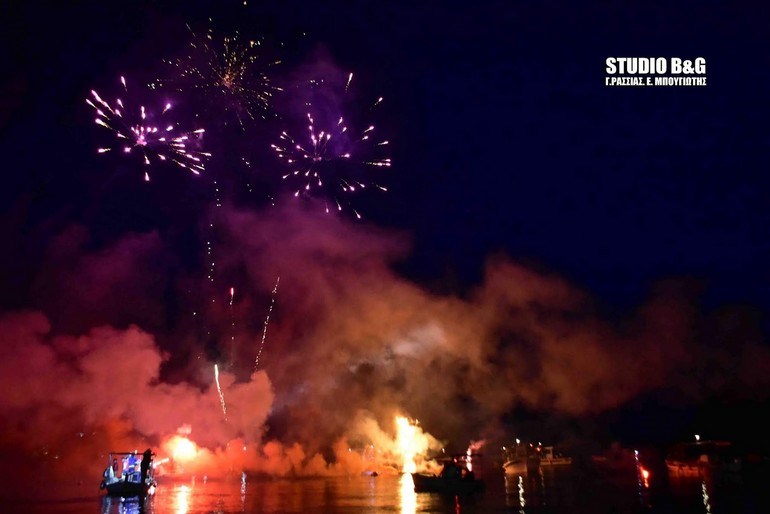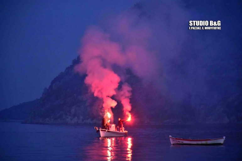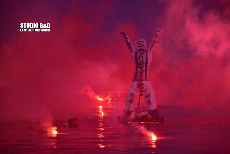 Το ομοίωμα του Ιούδα είχε τοποθετηθεί σε ειδική εξέδρα μέσα στην θάλασσα και βάρκες με βεγγαλικά ξεκίνησαν από το λιμάνι του Τολού και πυρπόλησαν τον στόχο τους.