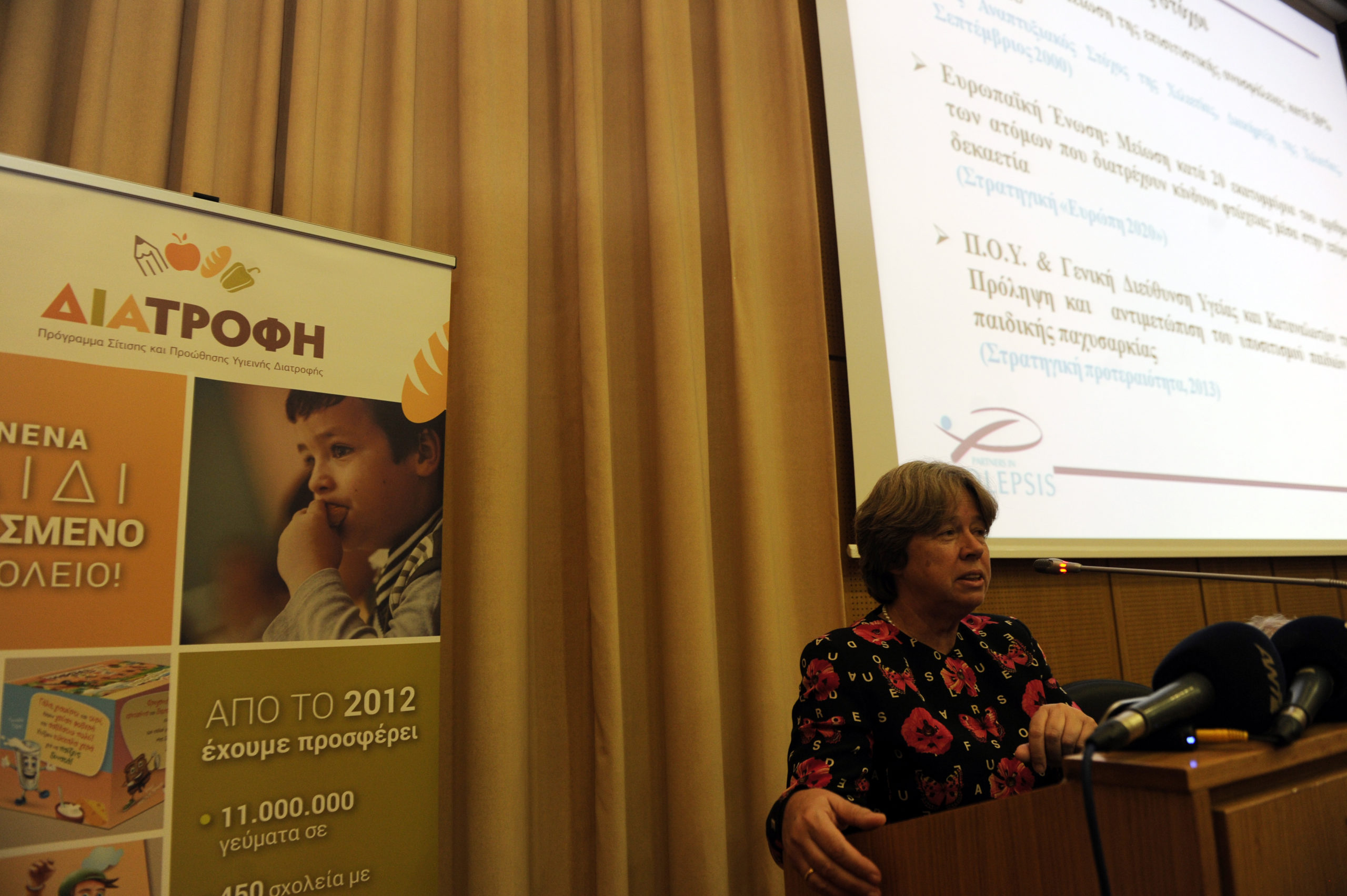 Στην ημερίδα, όπου μεταξύ άλλων χαιρέτησαν και οι Υφυπουργός Παιδείας Θεοδόσης Πελεγρίνης, ο Γενικός Γραμματέας Δημόσιας Υγείας Γιάννης Μπασκόζος και η Αντιπεριφερειάρχης Κοινωνικής Πολιτικής της Περιφέρειας Αττικής Κατερίνα Θανοπούλου, παρουσιάστηκε η δράση του Προγράμματος ΔΙΑΤΡΟΦΗ που υλοποιεί το Ινστιτούτο Prolepsis. Το Πρόγραμμα κατά κύριο λόγο παρέχει σίτιση στους μαθητές που το έχουν ανάγκη και μόνο από το 2012 έχει προσφέρει 11 εκ. γεύματα σε 450 σχολεία και 75.000 μαθητές.