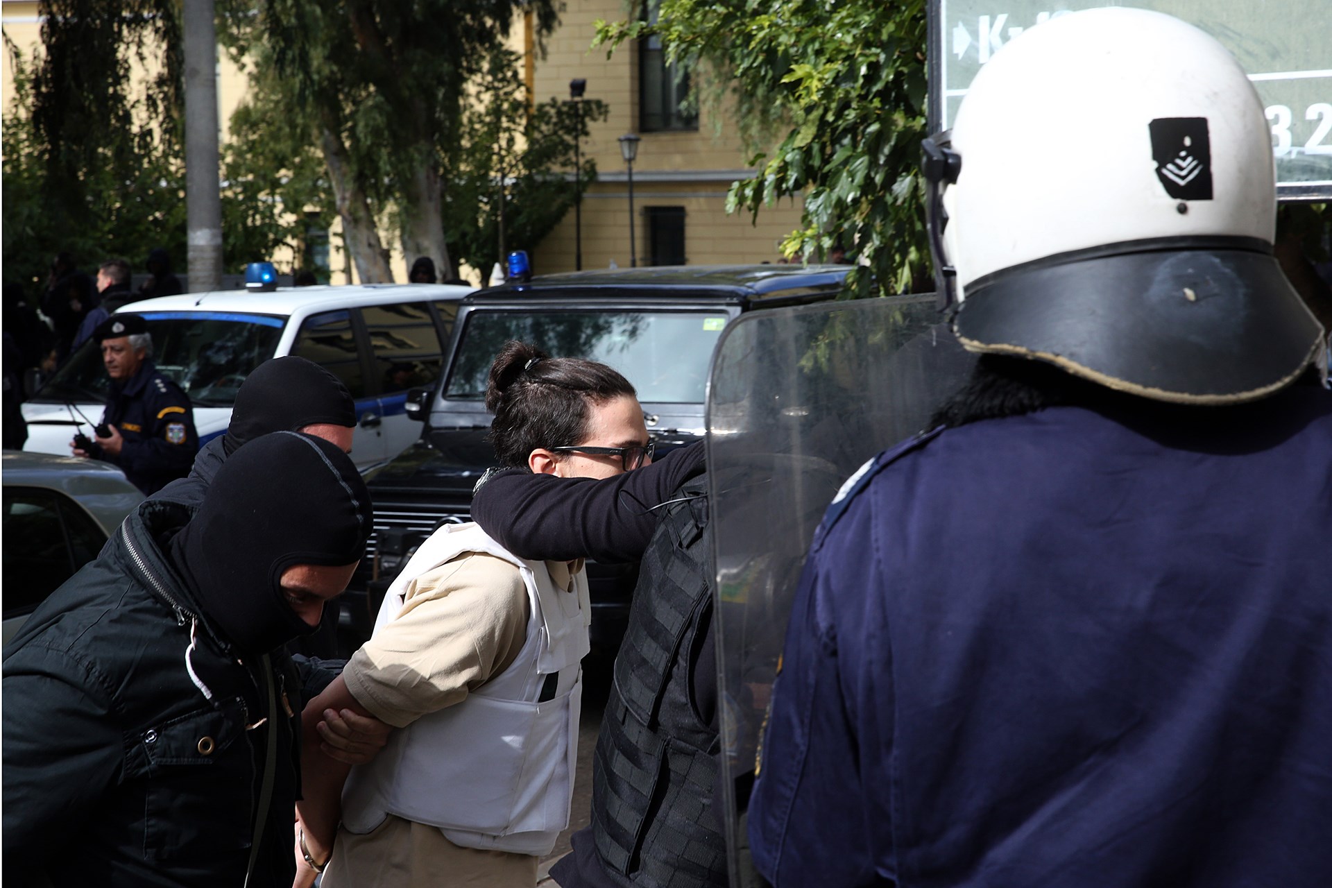 Τόσο κατά την είσοδο, όσο και κατά την εξόδου του από την ανακρίτρια περίπου 50 συγκεντρωμένοι αλληλέγγυοι φώναξαν συνθήματα συμπαράστασης υπέρ του κατηγορούμενου.