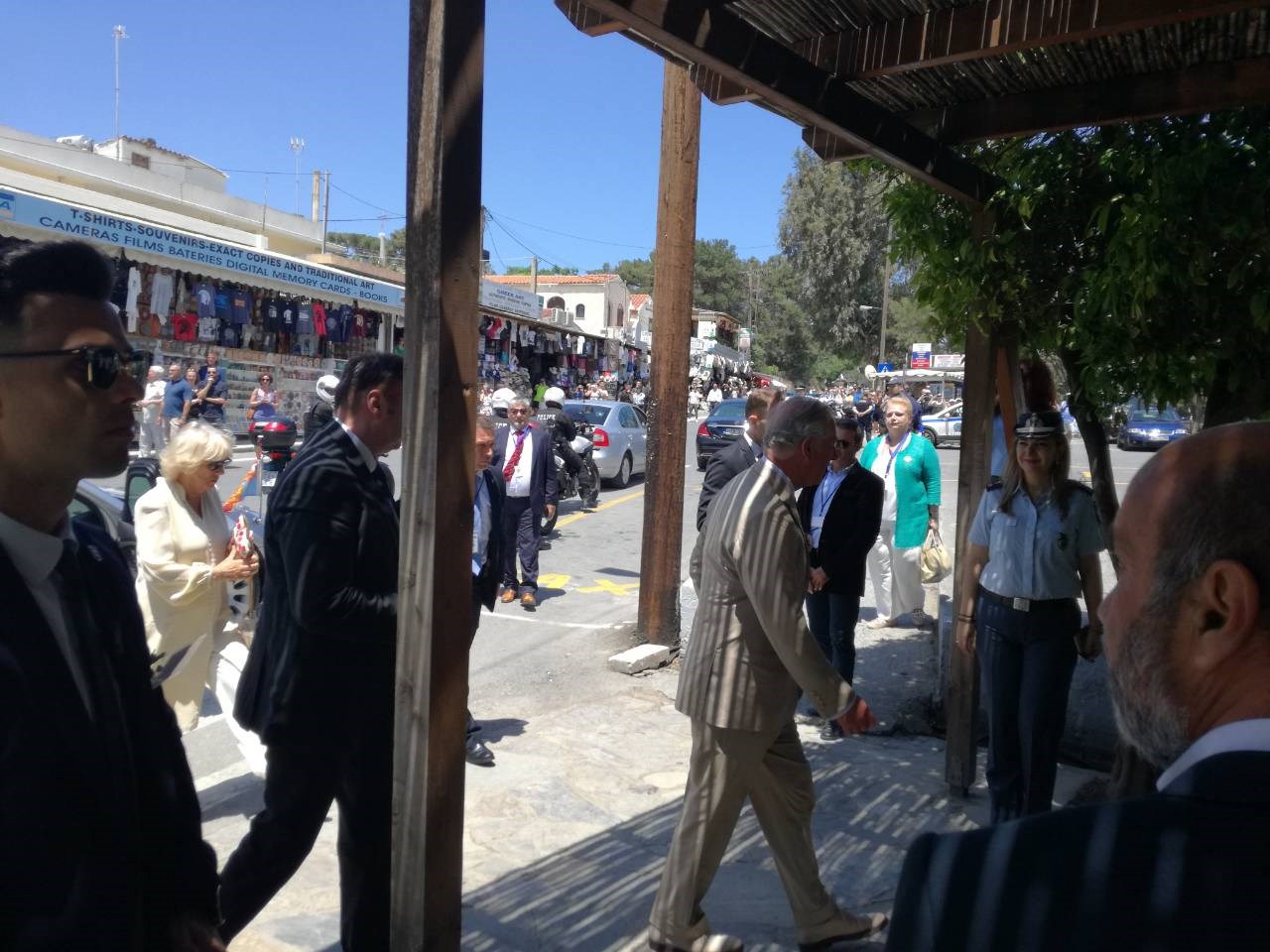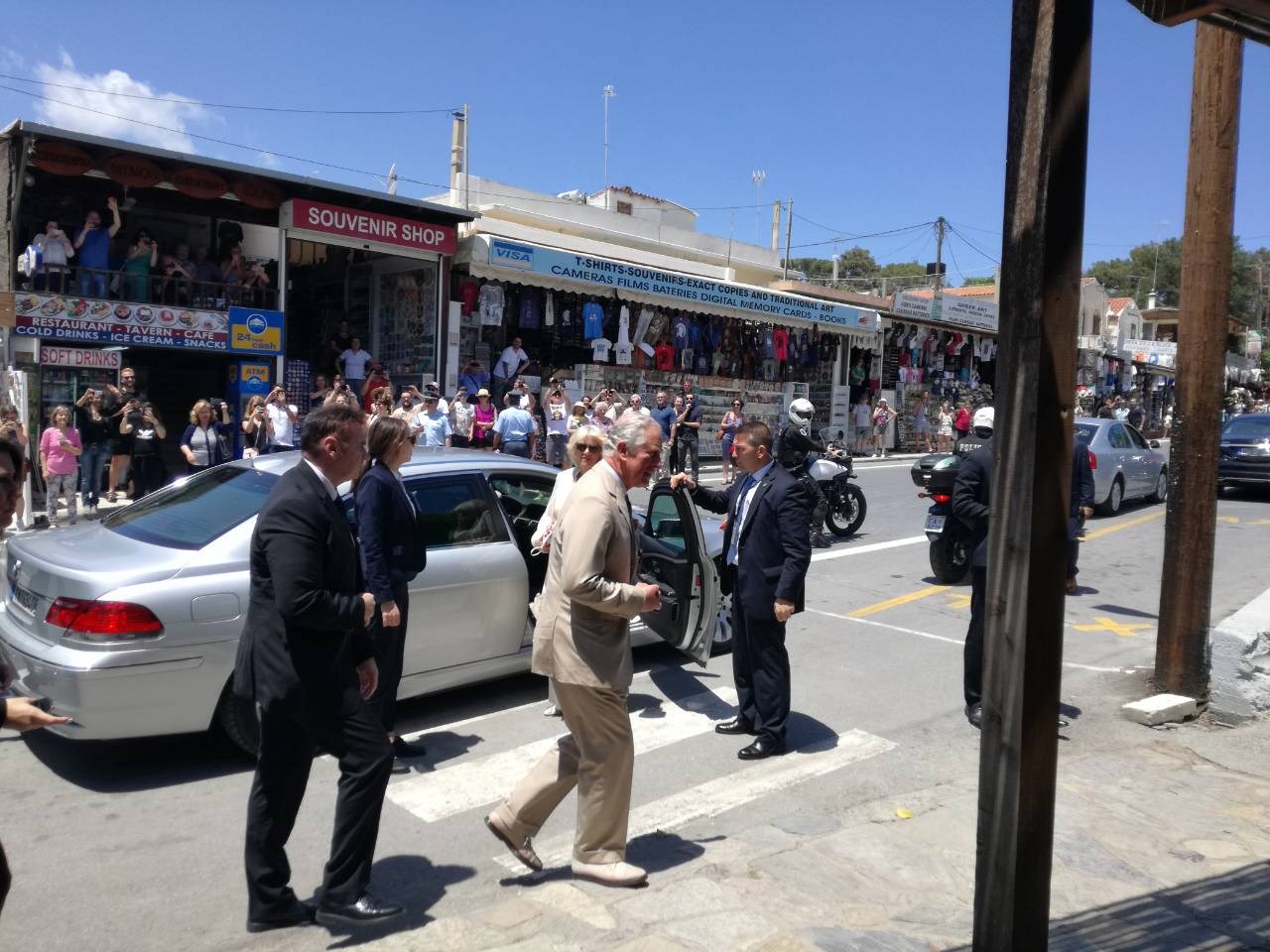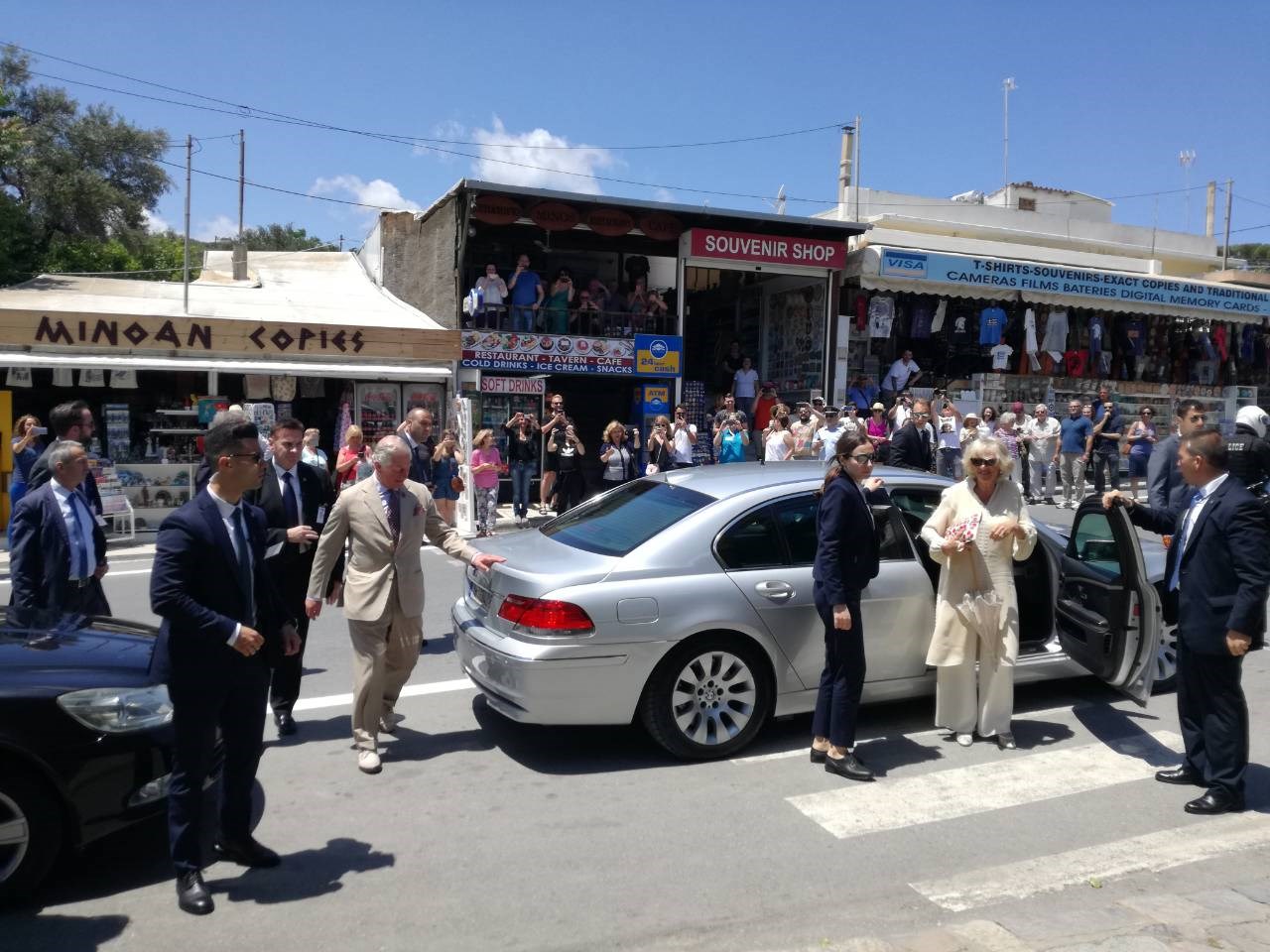 Λίγο πριν από τη 1 το μεσημέρι ο πρίγκιπας Κάρολος και η δούκισσα της Κορνουάλης, Καμίλα, έφτασαν στον αρχαιολογικό χώρο της Κνωσού.