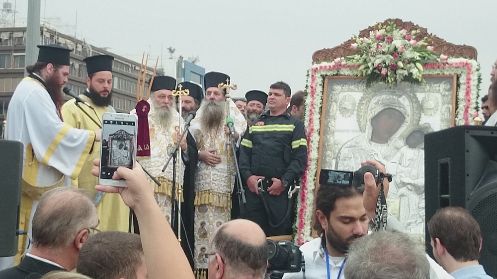 Μεγαλειώδης και συγκινητική ήταν η υποδοχή που επιφύλαξε πλήθος κλήρου και λαού στην ιερή εικόνα της Παναγίας της Πάρου, η οποία έφτασε στον Πειραιά το απόγευμα της Κυριακής 16 Οκτωβρίου.