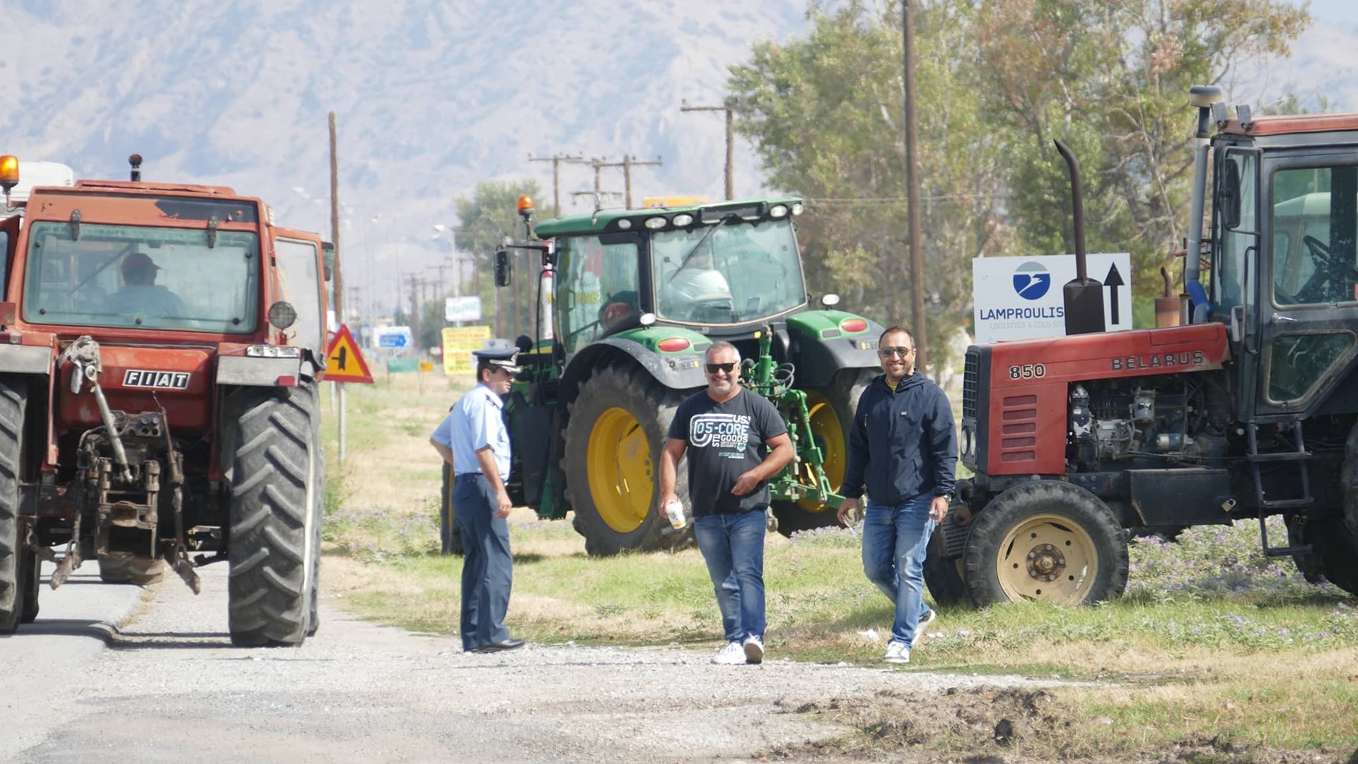 Οι αγρότες παρέταξαν τα τρακτέρ τους δίπλα στο οδόστρωμα και παράλληλα αναμένουν τα αποτελέσματα της συνάντησης που θα έχουν εκπρόσωποί τους – νωρίς το μεσημέρι της Δευτέρας – με την πολιτική ηγεσία του Υπουργείου Αγροτικής Ανάπτυξης και Τροφίμων.