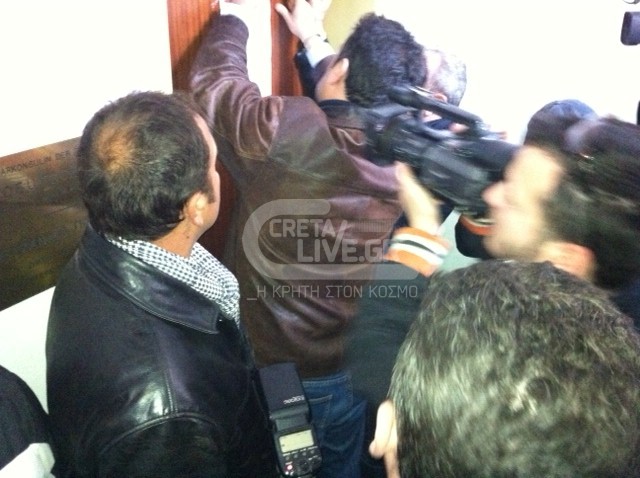 Λίγο αργότερα, πάντως, με παρέμβαση του αστυνομικού διευθυντή, Μ. Χαλκιαδάκη, οι πόρτες άνοιξαν και μπήκε μέσα ο αστυνομικός διευθυντής μαζί με τον πρόεδρο του ΕΚΗ, Σ. Βαρδάκη και το γραμματέα Σ. Βοργιά, οι οποίοι επέδωσαν το ψήφισμα, ενώ στο κτίριο είχε καταφθάσει και διμοιρίας της Αστυνομίας, για προληπτικούς λόγους. Πηγή:cretalive.gr