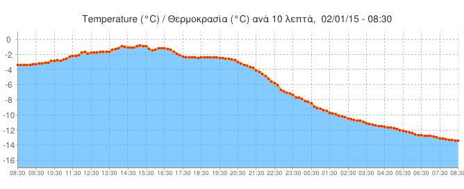Σύμφωνα με τον μετεωρολογικό σταθμό Γρεβενών  που φιλοξενείται σε υψόμετρο 510 μέτρων στο 1ο Επαγγελματικό Λύκειο Γρεβενών , στις 08:10 πμ έδειχνε -13,4 °C με σημείο δρόσου (Dewpoint) στους -15.1 °C!
