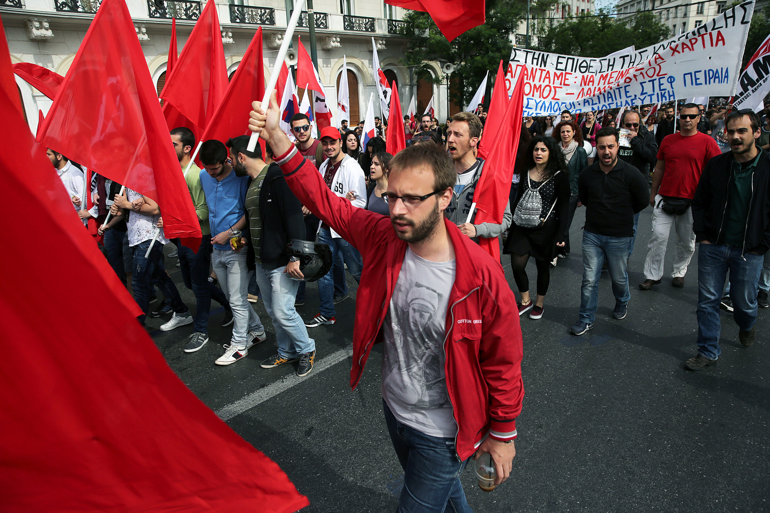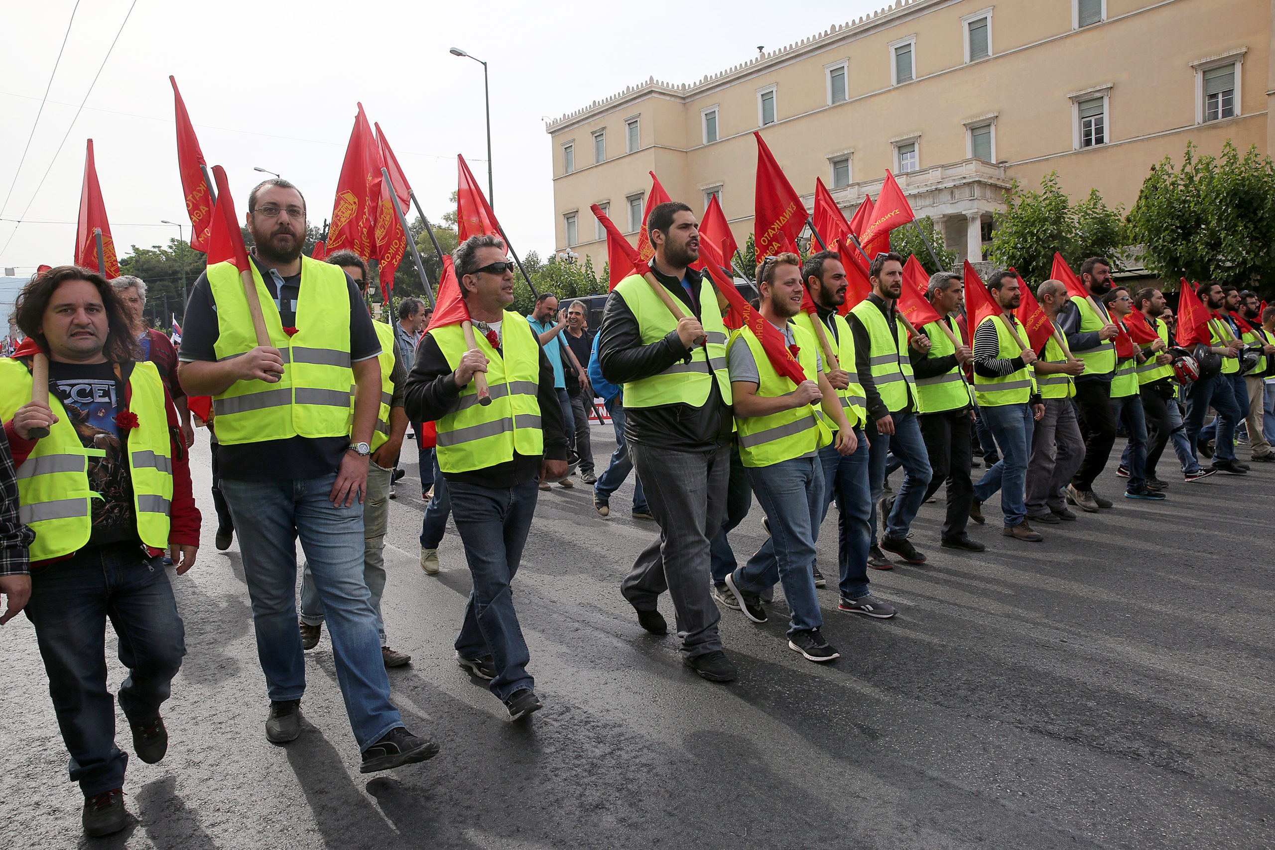 Συλλαλητήριο που γίνεται παράλληλα με την προγραμματισμένη για σήμερα απεργιακή συγκέντρωση για την Εργατική Πρωτομαγιά πραγματοποίησε η ΓΣΕΕ. Συμμετείχαν επίσης εκπρόσωποι της ΑΔΕΔΥ, συνταξιούχοι, το ΕΚΑ, η ΟΙΥΕ, η ΟΤΟΕ εργαζόμενοι στα Ναυπηγία Σκαραμαγκά, οι ενώσεις των εμπόρων, η Λαϊκή Ενότητα κ.ά.