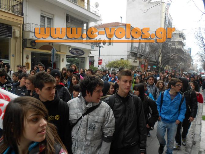 Eκατοντάδες μαθητές Γυμνασίων και Λυκείων, έκαναν νέα πορεία στους κεντρικούς δρόμους του πολεοδομικού συγκροτήματος κόντρα στο μνημόνιο αλλά και στο δήμο Βόλου.