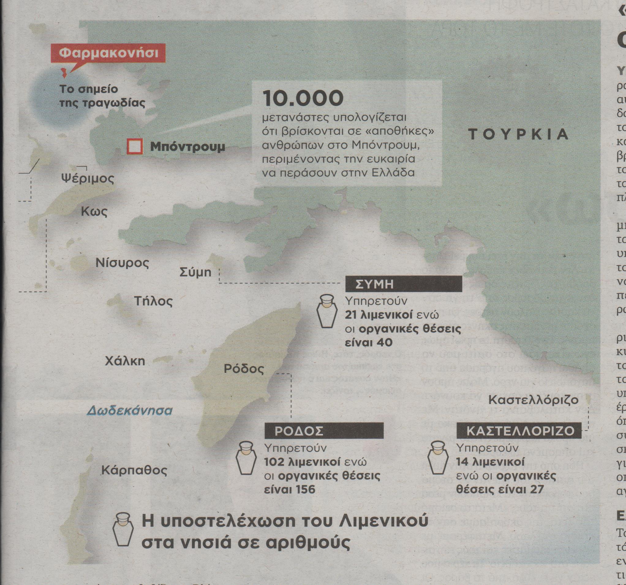 Θύματα των κυκλωμάτων αυτών ήταν και οι 28 πρόσφυγες που βρέθηκαν να θαλασσοπνίγονται στο Φαρμακονήσι με τραγικό αποτέλεσμα 12 από αυτούς -γυναίκες και παιδιά- να χάσουν τη ζωή τους. Ο διακινητής τους επιβίβασε στην ξύλινη βάρκα από περιοχή (ακριβώς απέναντι από το Φαρμακονήσι) κοντά στο Μπόντρουμ.