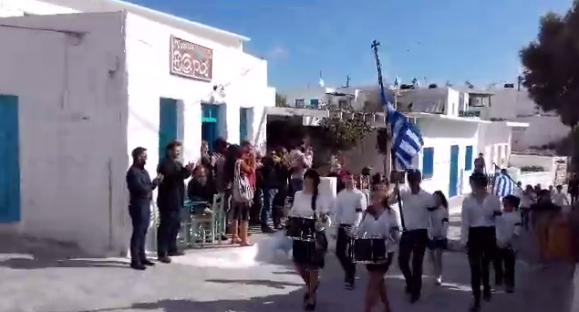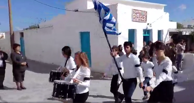 Οι μαθητές με τη συνοδεία των τυμπάνων, παρέλασαν καταχειροκροτούμενοι από το κόσμο του νησιού που παρακολούθησε τις εορταστικές εκδηλώσεις και που στις αρχές του μήνα τυλίχτηκε στο πένθος με τον άδικο χαμό της 10χρονης Σοφίας.