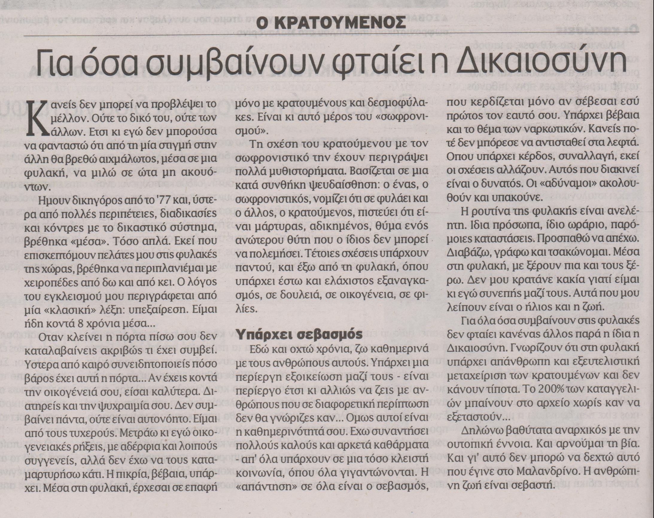 Η άποψη του κρατούμενου.