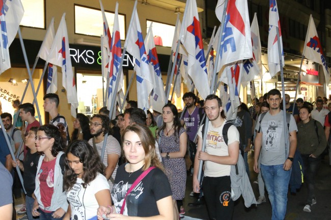 Η πορεία της Ένωσης Δημοσιοϋπαλληλικών Οργανώσεων Θεσσαλονίκης ξεκίνησε από την πλατεία Αγίας Σοφίας και κατέληξε στο Λιμάνι, όπου πραγματοποιείται το Αντιρατσιστικό Φεστιβάλ Θεσσαλονίκης.