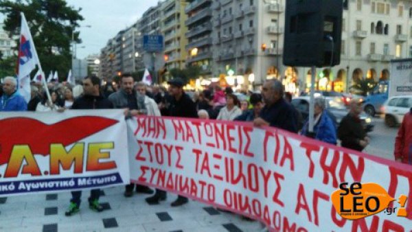 Το ΠΑΜΕ κάλεσε σε συγκέντρωση στο άγαλμα του Βενιζέλου και οι διαδηλωτές, κρατώντας πανό που έγραφε «Αρκετά ματώσαμε, αρκετά πληρώσαμε, δούλοι στον 21ο αιώνα δεν θα γίνουμε» έκαναν πορεία στους κεντρικούς δρόμους της Θεσσαλονίκης, που κατέληξε στο υπουργείο Μακεδονίας-Θράκης.