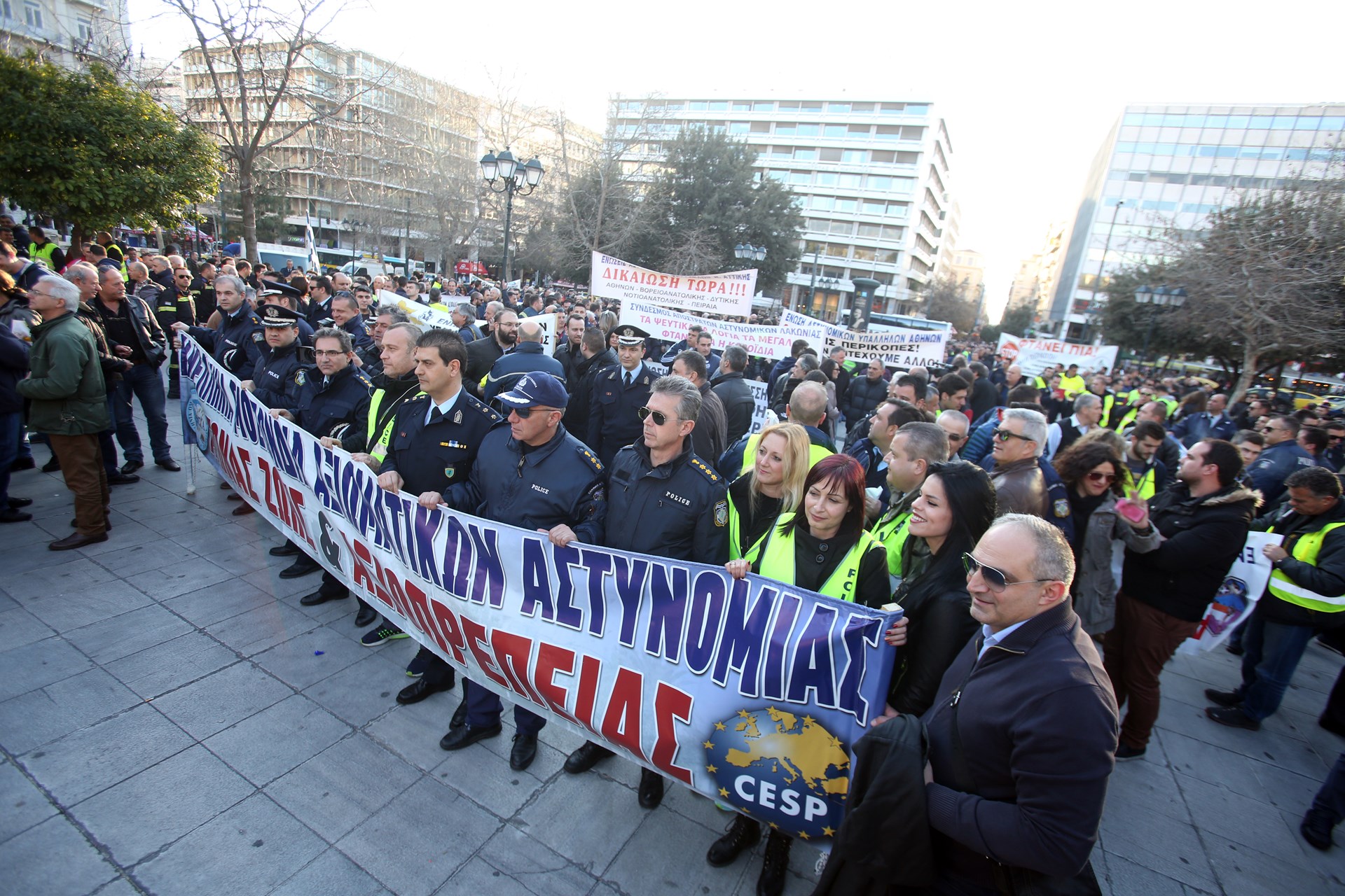 Πανελλαδική συγκέντρωση διαμαρτυρίας πραγματοποιούν στην Πλατεία Συντάγματος, περισσότεροι από 1.000 εκπρόσωποι των Σωμάτων Ασφαλείας, που ζητούν να εφαρμοστεί η απόφαση της Ολομέλειας του Συμβουλίου της Επικρατείας σχετικά με το μισθολόγιο τους.«Ζητάμε να εφαρμοστεί η απόφαση της Ολομέλειας του ΣτΕ και να πάρουμε αυτά που δικαιούμαστε. Είμαστε στην πλατεία Συντάγματος και δεν κλείνουμε κάποιο δρόμο, γιατί δεν θέλουμε να ταλαιπωρήσουμε τους πολίτες», τόνισε ο πρόεδρος της Πανελλήνιας Ομοσπονδίας Αστυνομικών Υπαλλήλων, Γρηγόρης Γερακαράκος.Οι συγκεντρωμένοι έχουν αναρτήσει πανό, στα οποία γράφουν συνθήματα σχετικά με τα αιτήματά τους, ενώ πρόκειται να κάνουν πορεία προς τη Βουλή.