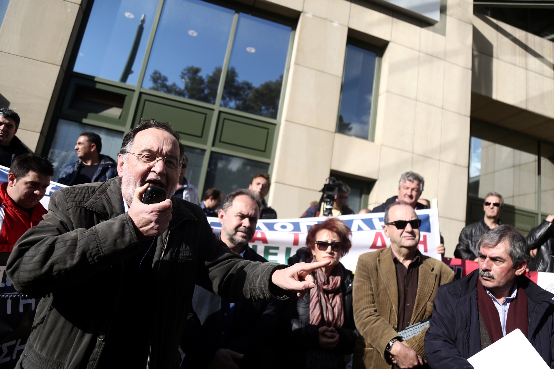 Συγκέντρωση διαμαρτυρίας ενάντια στην επικείμενη ιδιωτικοποίηση του 40% των λιγνιτικών μονάδων της ΔΕΗ πραγματοποιήθηκε έξω από το υπουργείο Περιβάλλοντος και Ενέργειας από εργαζόμενους στον Οργανισμό και εκπροσώπους της εκκλησίας και της τοπικής κοινωνίας.