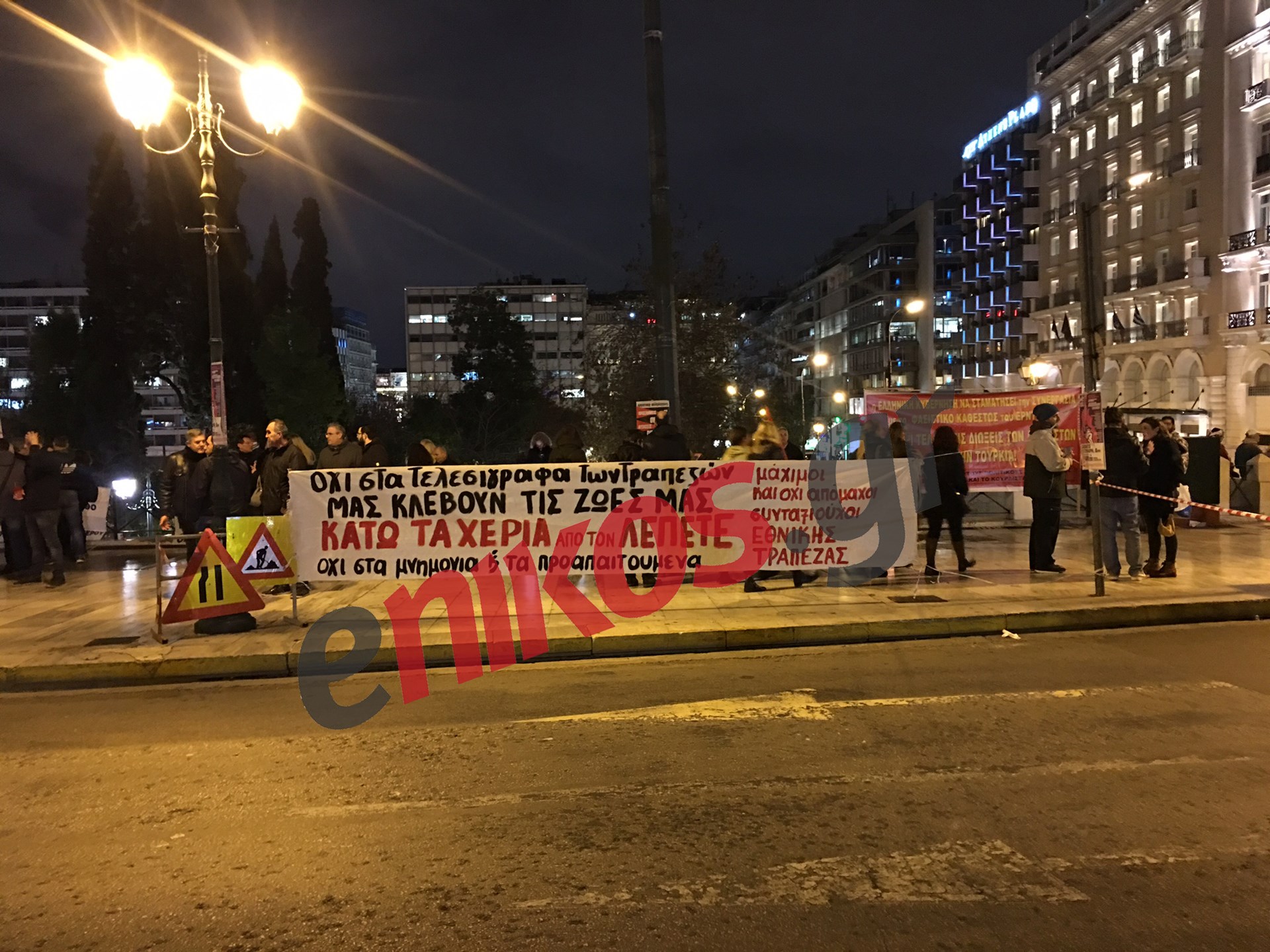 Συλλαλητήριο στο Σύνταγμα πραγματοποιεί η ΓΣΕΕ ενάντια στο πολυνομοσχέδιο που τίθεται σε ψηφοφορία στη Βουλή.