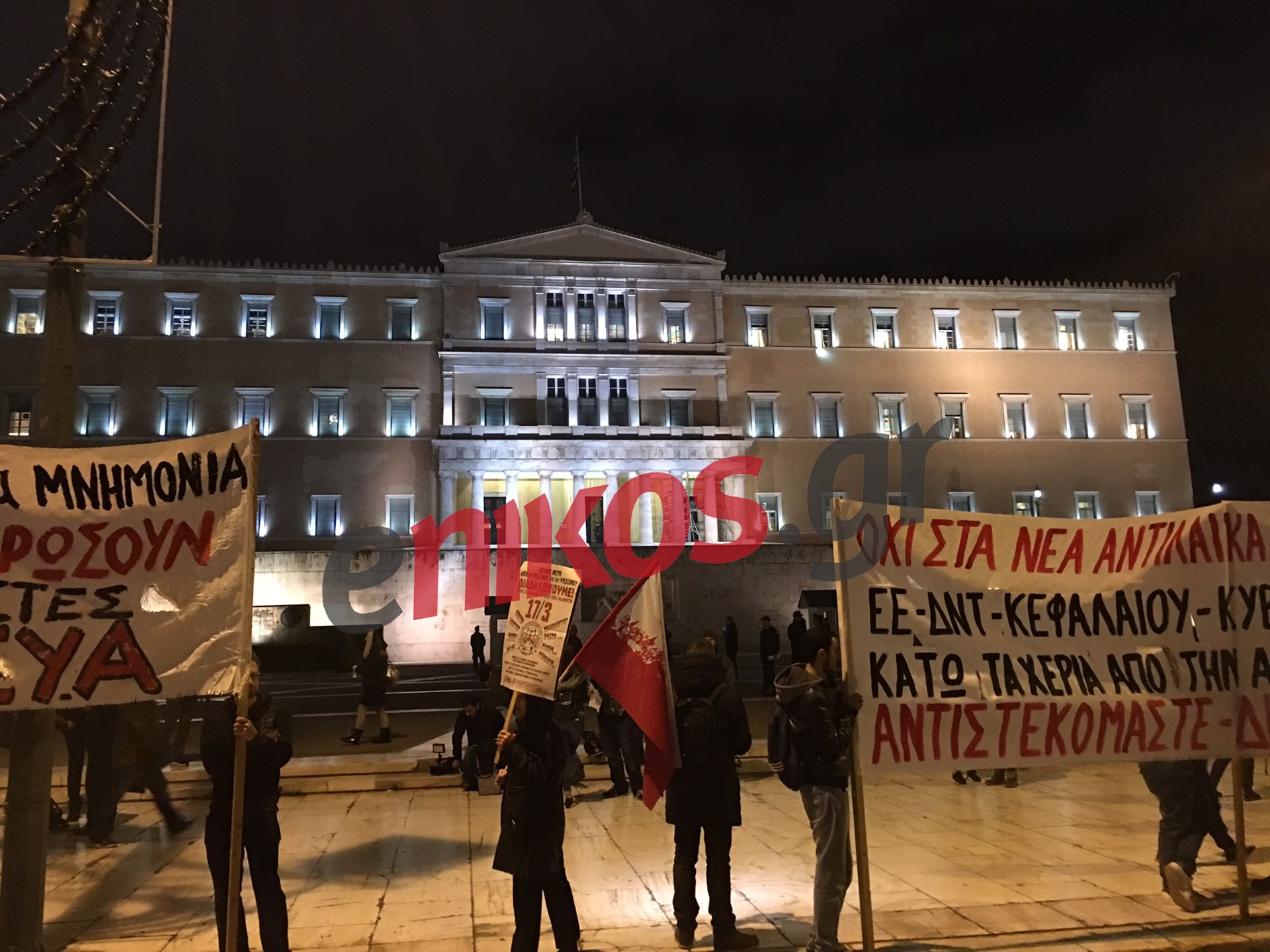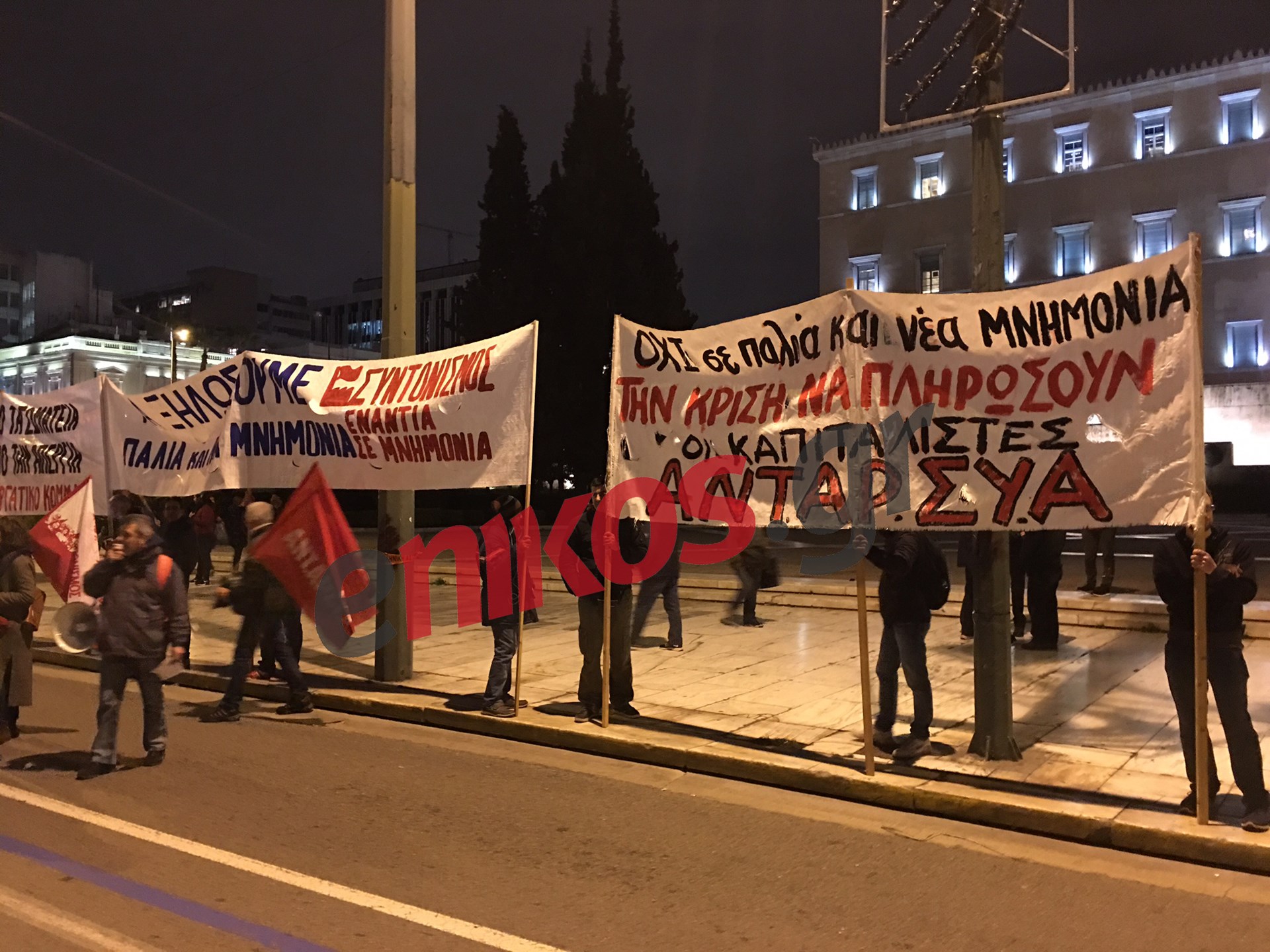 Μπροστά από τη Βουλή διαδηλώνουν αυτή τη στιγμή η ΛΑΕ, η ΑΝΤΑΡΣΥΑ, και οργανώσεις που αντιτίθενται στο πολυνομοσχέδιο. Σε εξέλιξη είναι επίσης συγκέντρωση που διοργάνωσε το ΠΑΜΕ στην Ομόνοια ενάντια στο πολυνομοσχέδιο.