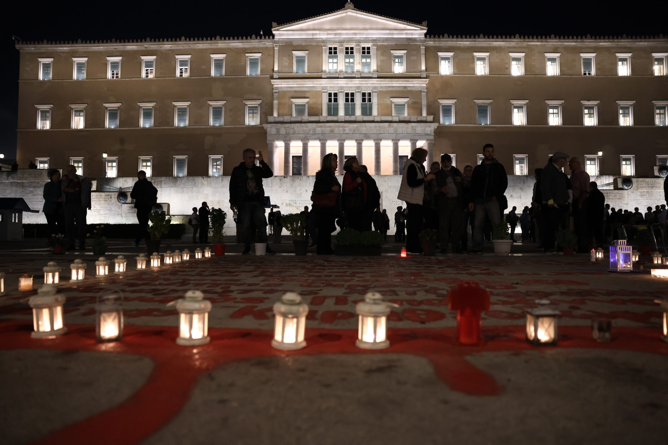 Άνθρωποι όλων των ηλικιών ανταποκρίθηκαν στα καλέσματα ομάδων, οργανώσεων και πολιτικών κομμάτων και συγκεντρώθηκαν μπροστά από το μνημείο του Αγνώστου Στρατιώτη προκειμένου να εκφράσουν την διαμαρτυρία τους, ενώ σε μία συμβολική κίνηση άναψαν κεριά στη μνήμη των 57 θυμάτων της τραγωδίας των Τεμπών, τα οποία τοποθέτησαν δίπλα στα ονόματά τους.